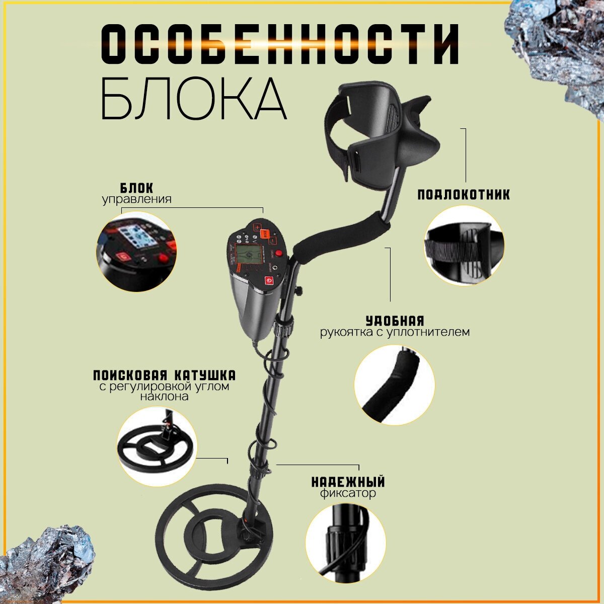 | Особенности | влагозащита катушки/рамки / выход на наушники / дискриминатор |