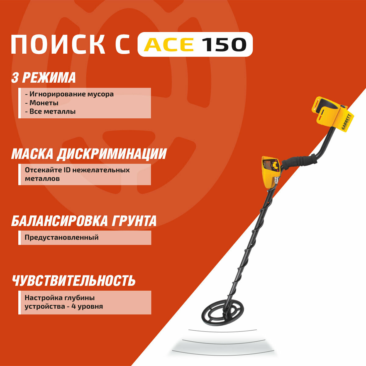 Грунтовой металлодетектор Garrett ACE 150 RUS
