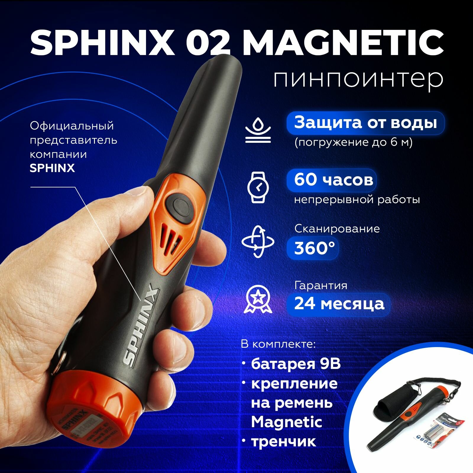 Металлодетектор SPHINX 02 BL + Чехол на бедро