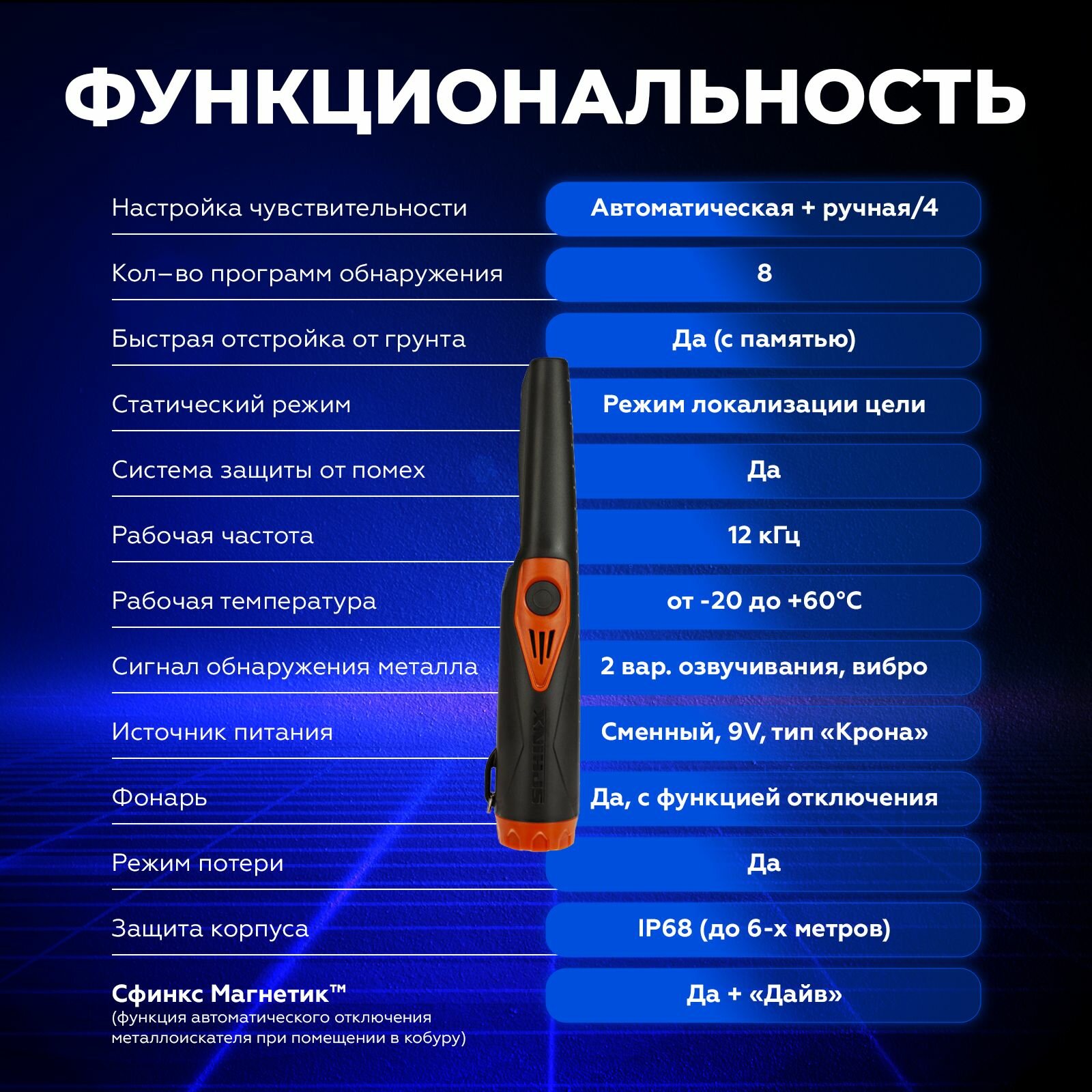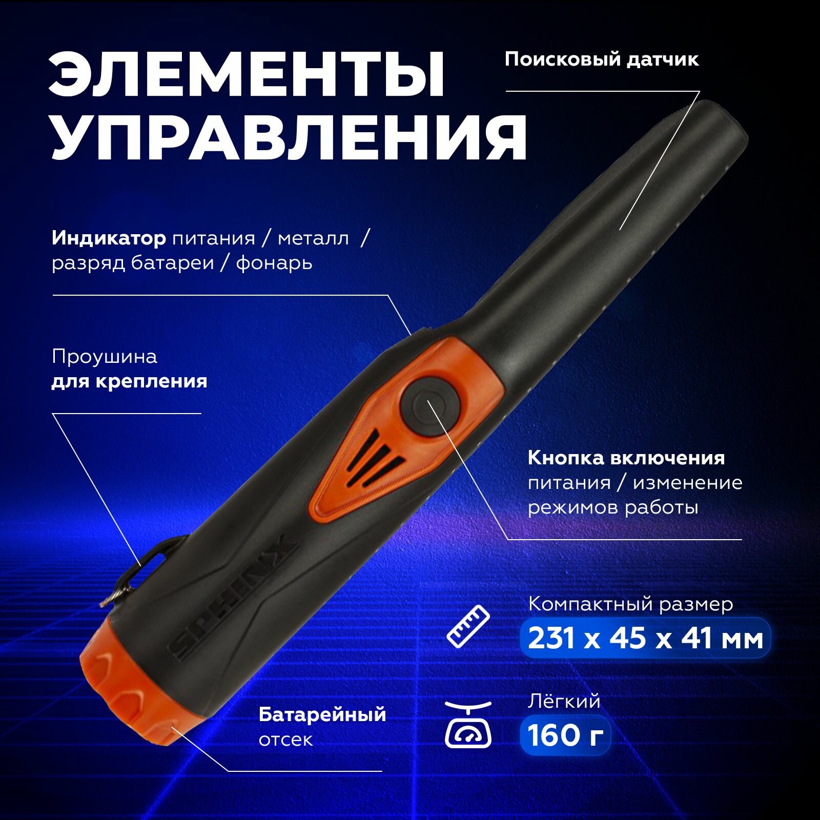 Металлоискатель Sphinx 02 (пинпоинтер) черный / пинпоинтер Сфинкс 02 / с функцией Sphinx Magnetic