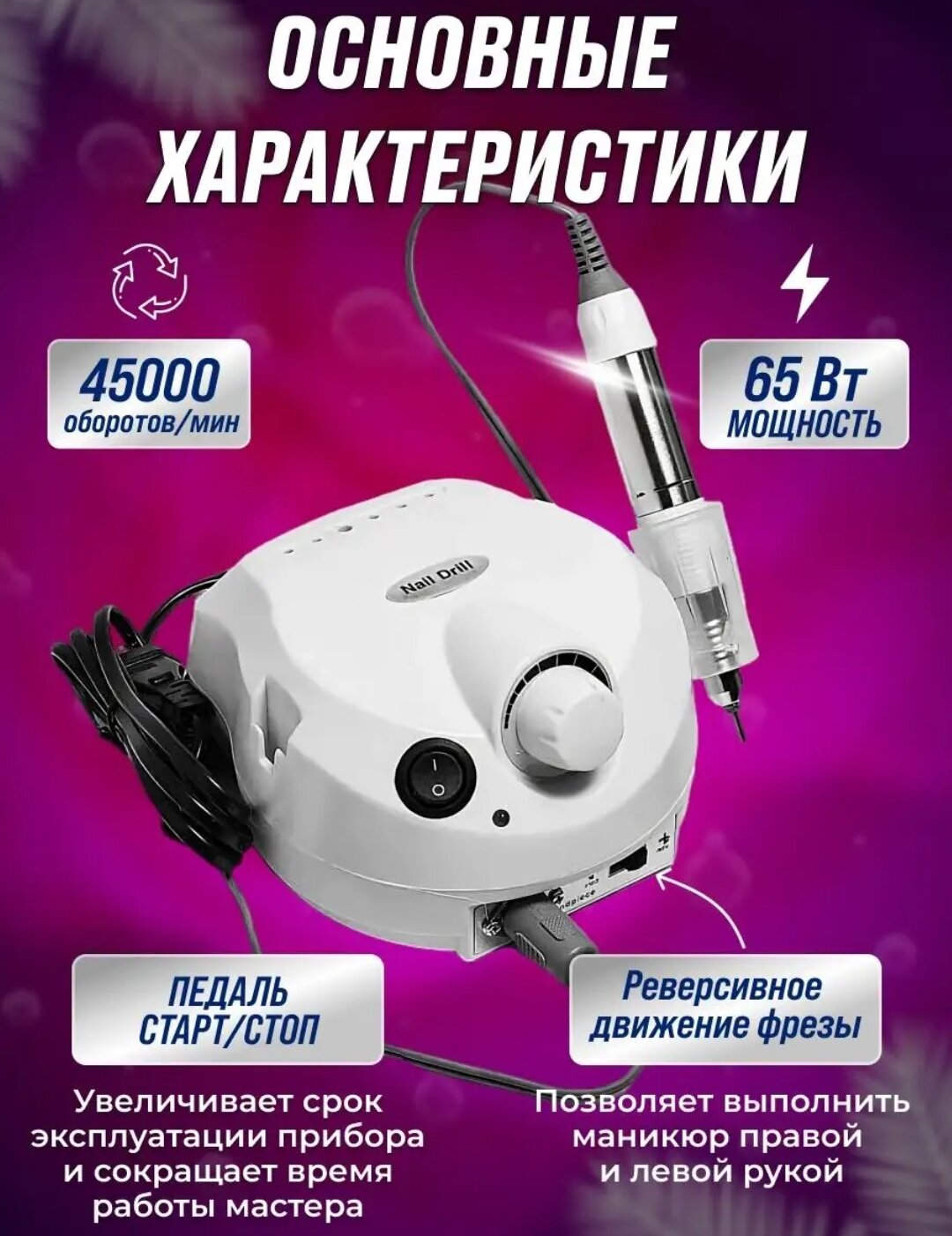 Фрезерный аппарат для маникюра и педикюра / машинка для маникюра 45000 об/мин 65 Вт / Фрезер для маникюра и педикюра / белый интересное: