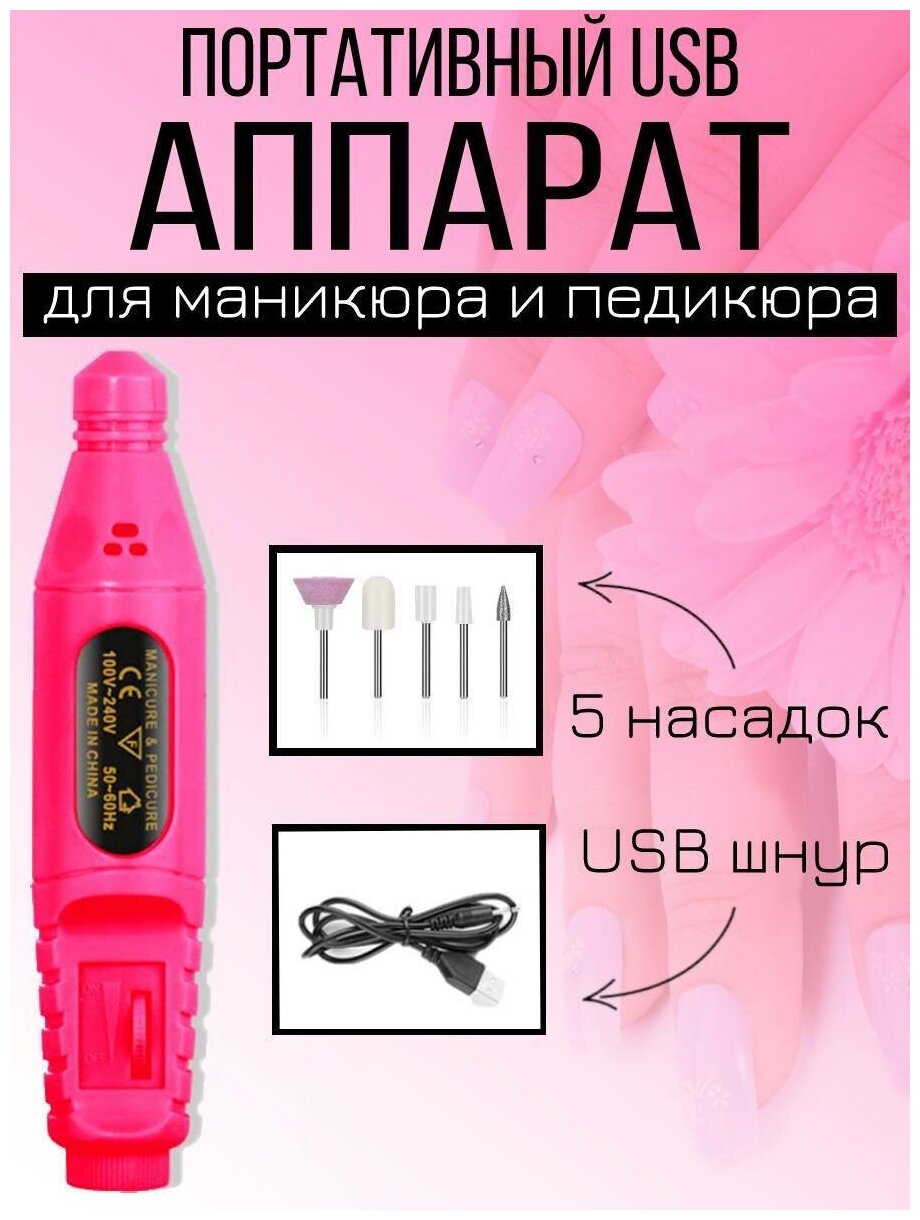 Портативный аппарат для маникюра и педикюра, фрезер, машинка-ручка, USB, малиновый интересное: