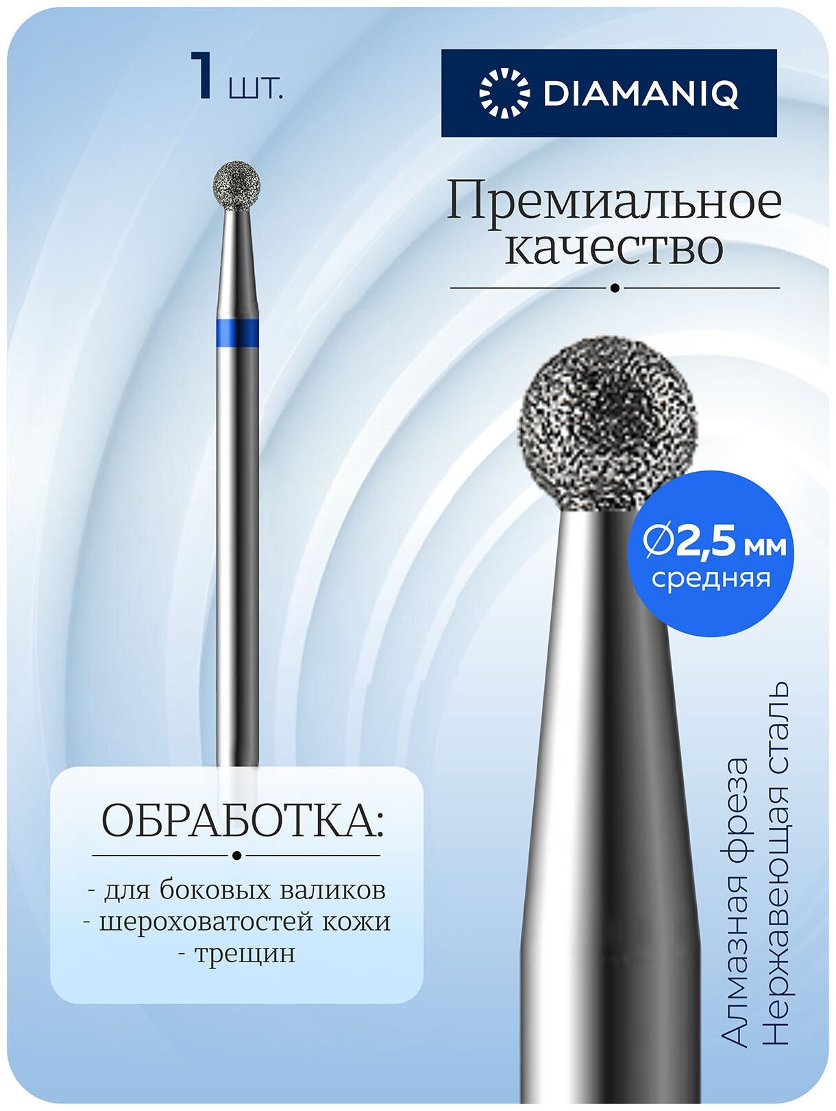 DIAMANIQ Фреза для маникюра и педикюра алмазная 825 001 524 025 Средняя синяя шар d-2.5 интересное:
