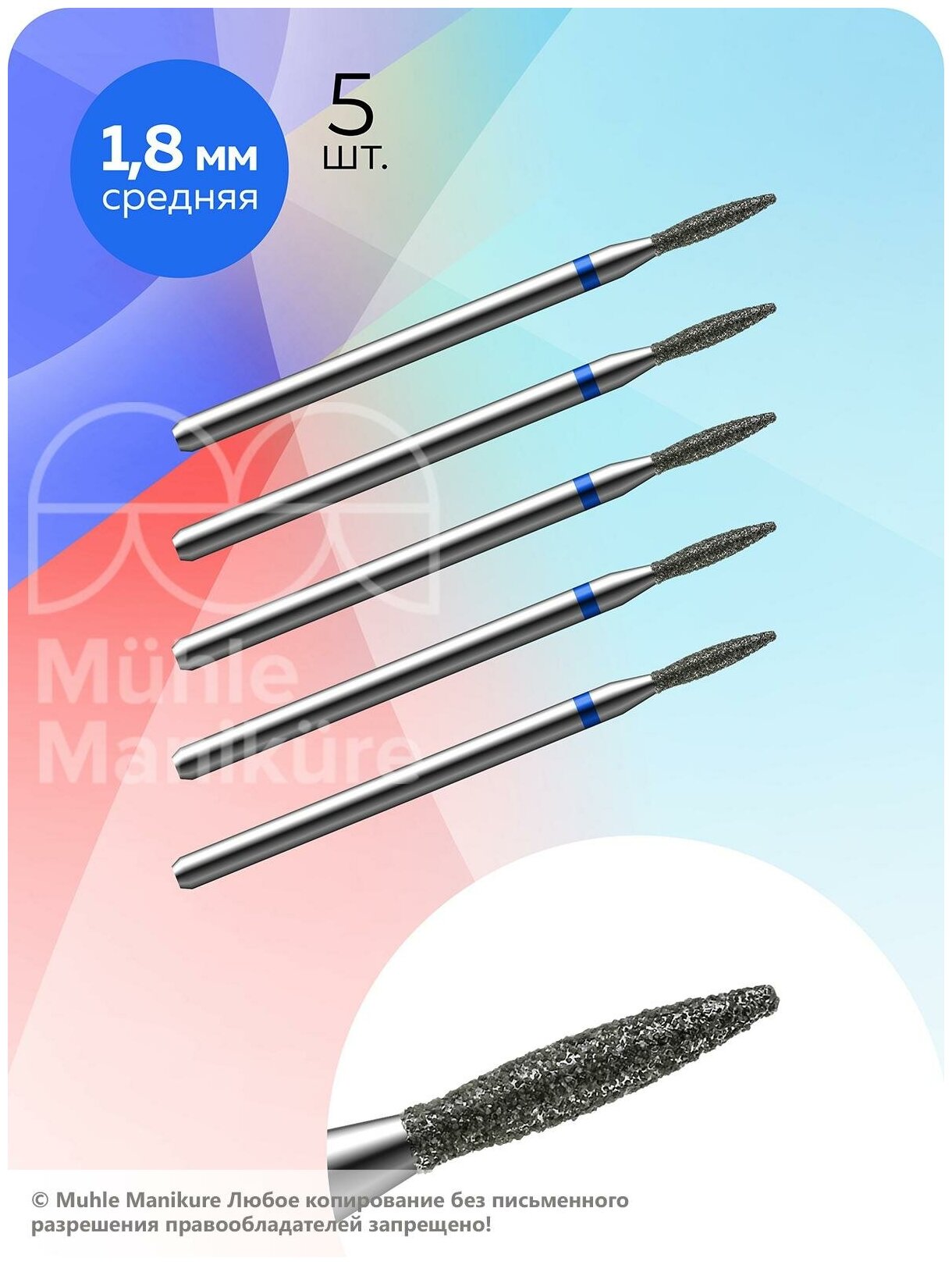Muhle Manikure Фреза для маникюра и педикюра алмазная 806 244 524 018 Средняя синяя пламя закругленное (тупое) для кутикулы (упаковка 5 шт) интересное: