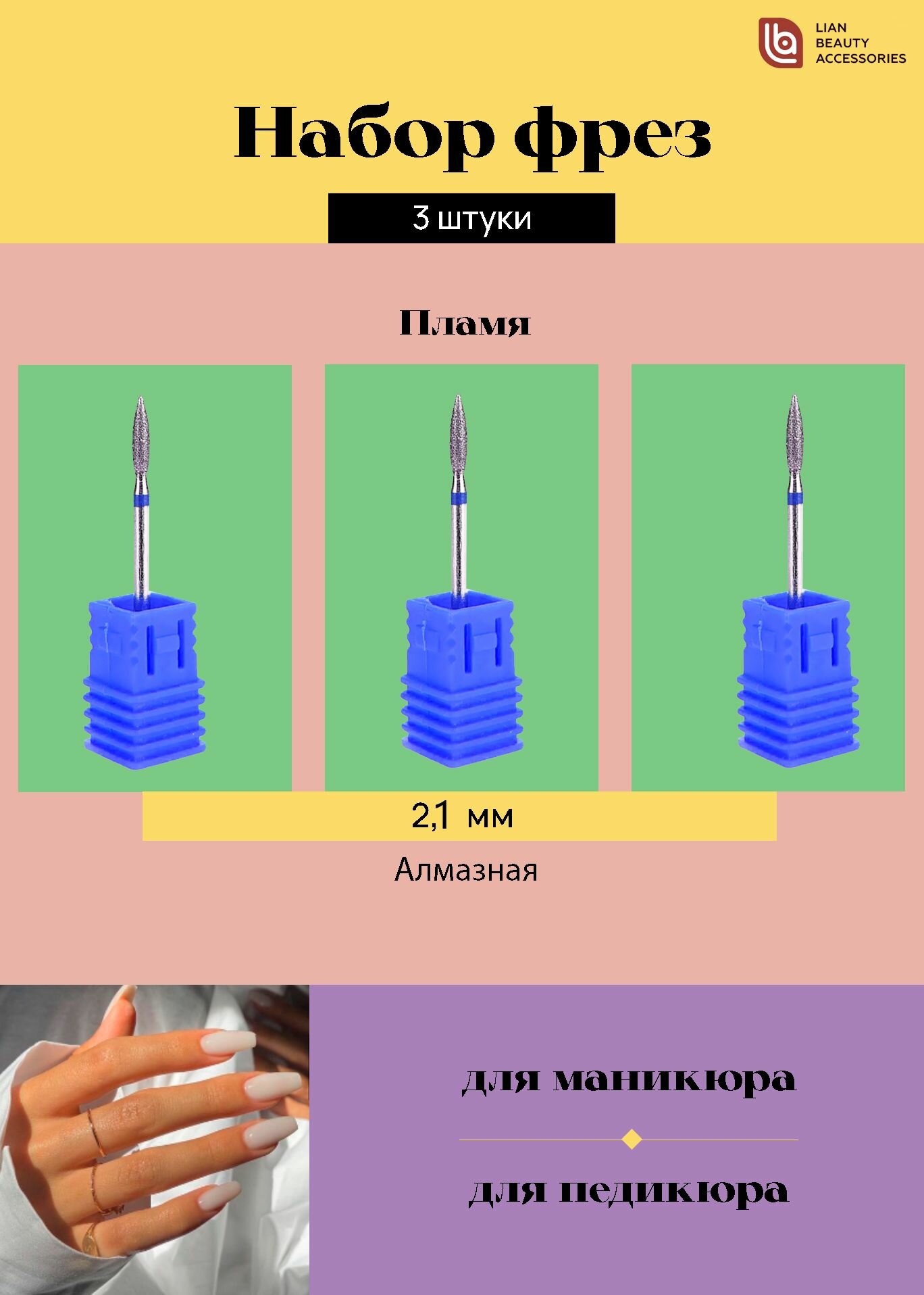 Купить Фреза для маникюра Пламя острое 2.1 мм с синей насечкой 3 шт./ Фреза алмазная для маникюрного аппарата/ Фрезы для ногтей и кутикулы