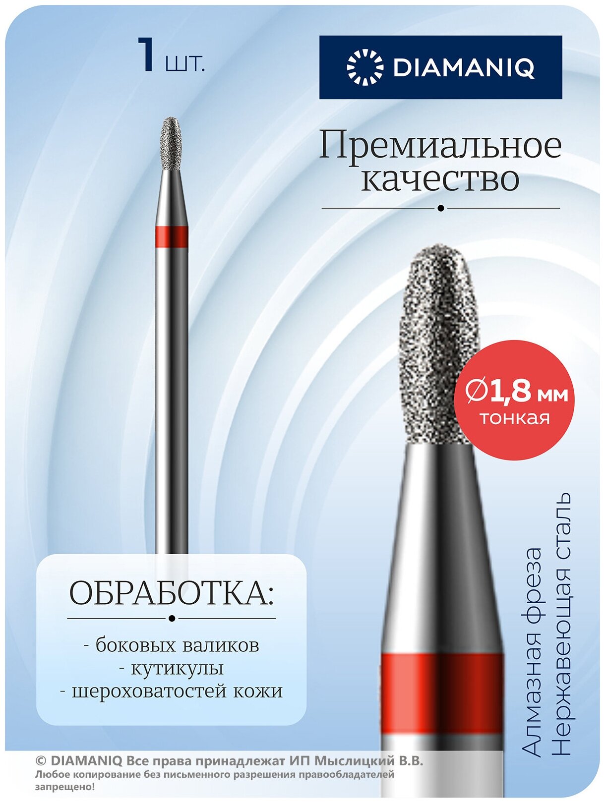 DIAMANIQ Фреза для маникюра и педикюра алмазная 825 277 514 018 Тонкая красная олива (овал, бутон, чечевица) d-1.8 интересное: