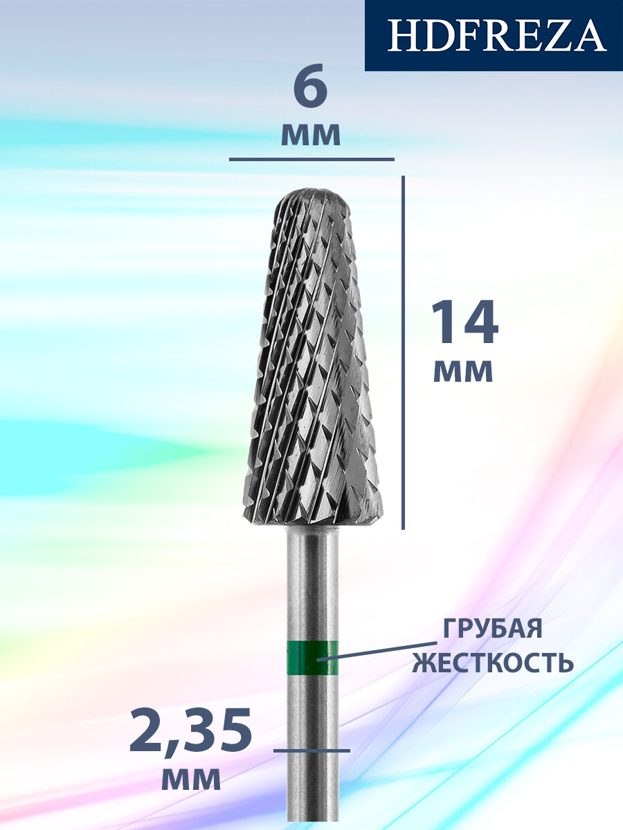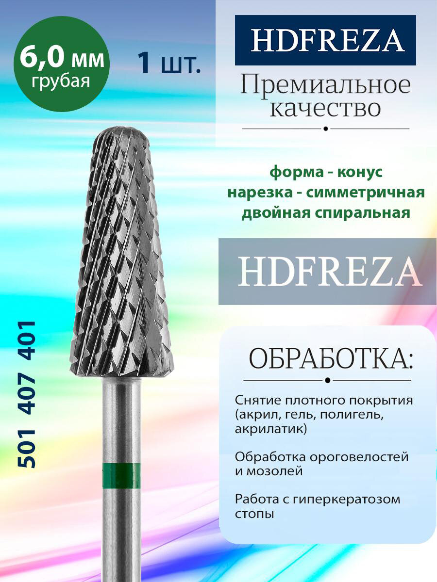 Купить HDFREZA Фреза для маникюра и педикюра твердосплавная 501 407 401 Грубая зеленая конус для снятия покрытия