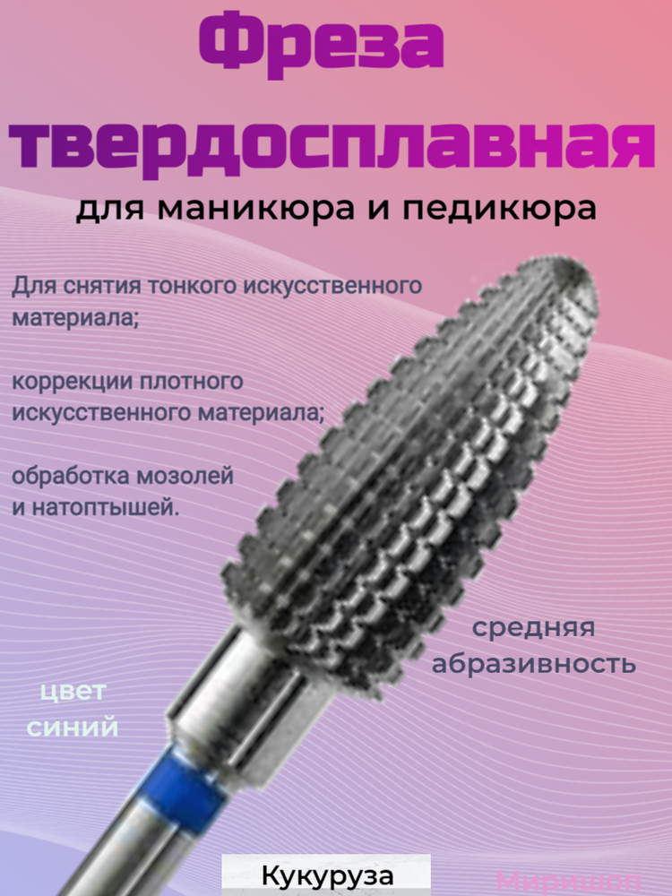 Фреза твердосплавная Кукуруза для аппаратного маникюра, синяя интересное:
