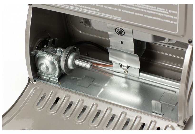 | Плюсы: | Реально неплохо греет любое закрытое помещение. Есть встроенная пластина для подогрева баллона. |