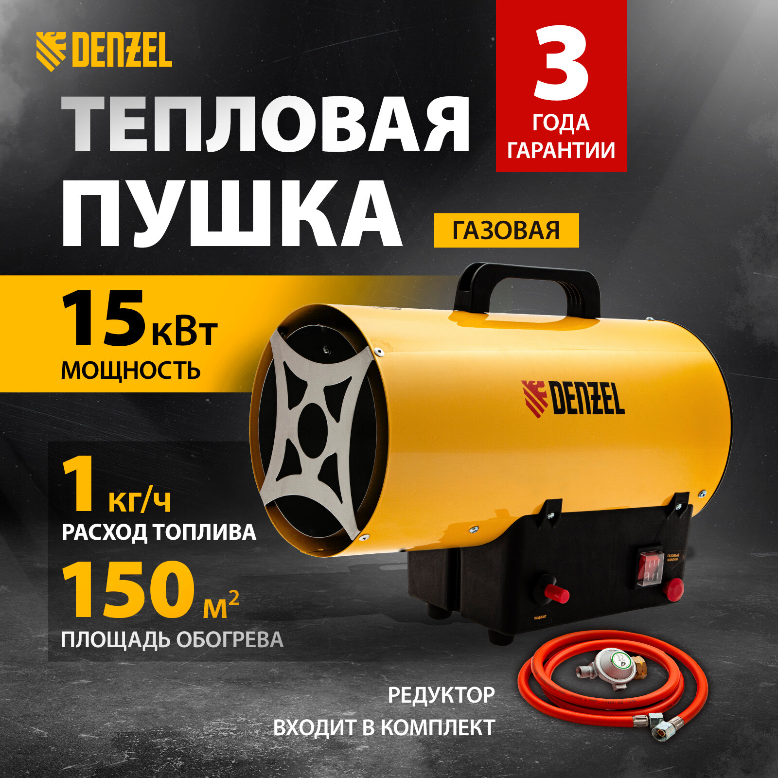 Тепловая пушка Denzel Ghg-15, газовая, 15 000 Вт, 500 м3/ч, пропан-бутан, 1 кг/ч Denzel 7689438 .