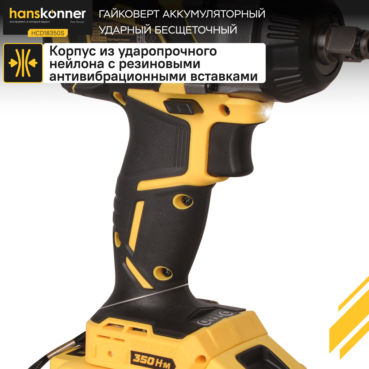 Гайковёрт аккумуляторный Hanskonner HCD18350S 18В Li 350Нм 1/2