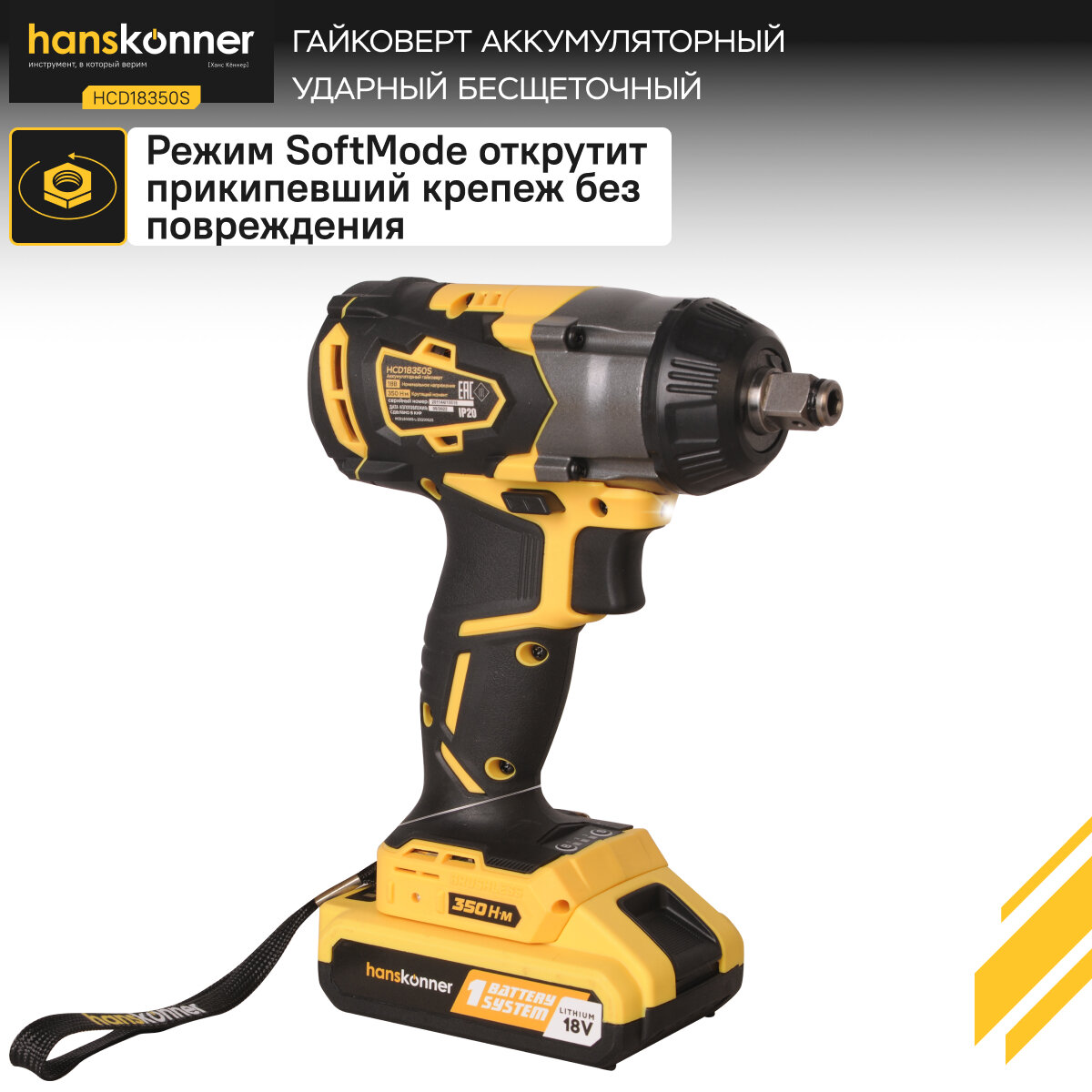 Аккумуляторный ударный гайковерт Hanskonner 1BatterySystem арт. HCD18100S