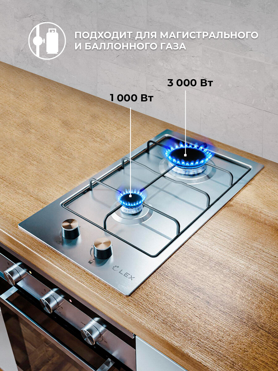 LEX Варочная поверхность LEX GVS 320 IX газовая, нержавеющая сталь