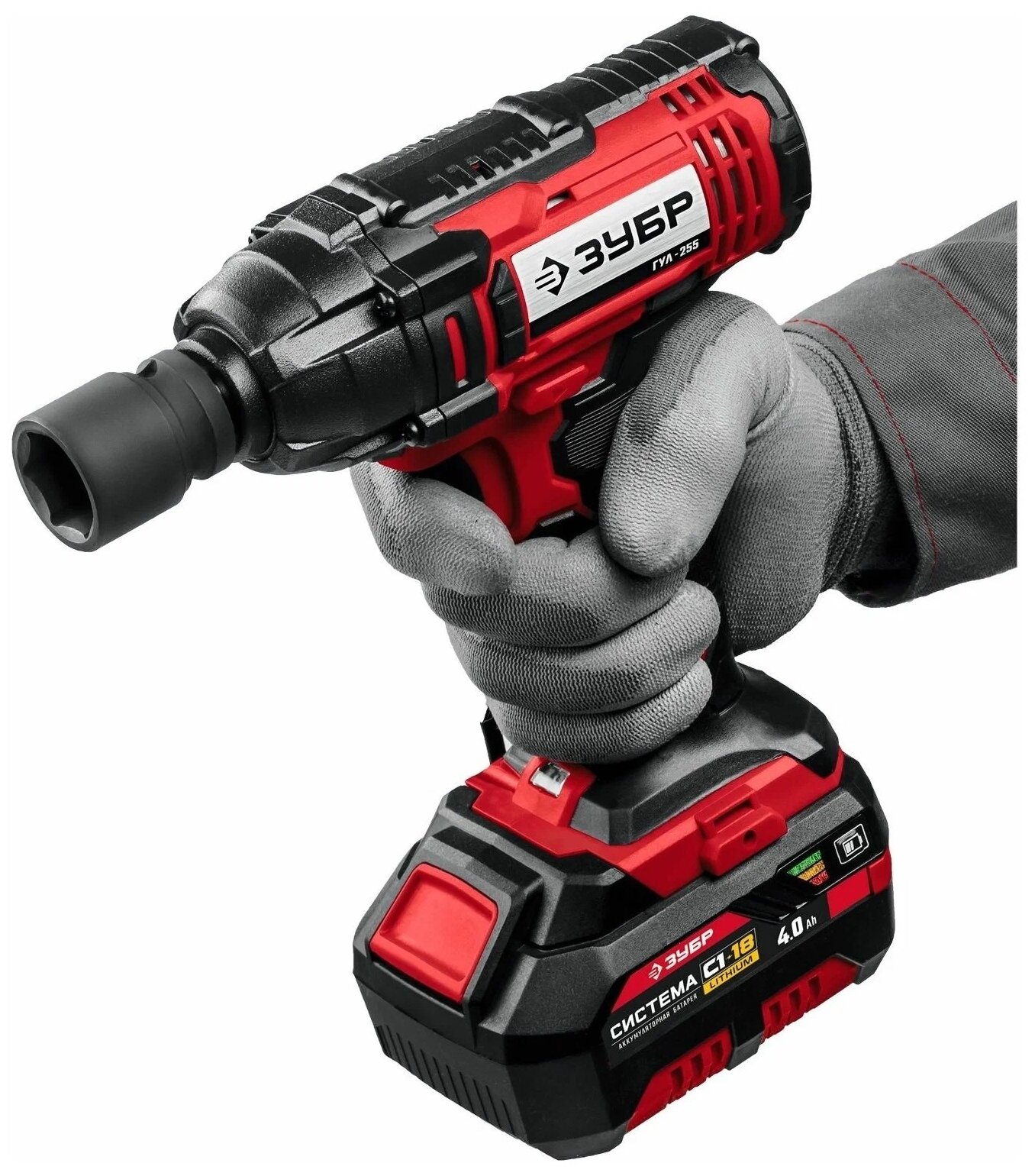 Гайковерт ударный Зубр ГУЛ-255-41 18В, 1 АКБ (4Ач), в кейсе