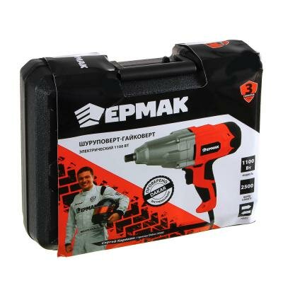 Ермак Гайковерт сетевой ударный 1100Вт, 350 Н*м, патрон квадрат 1/2, кейс, головки 17,19, 21, 22 мм интересное: