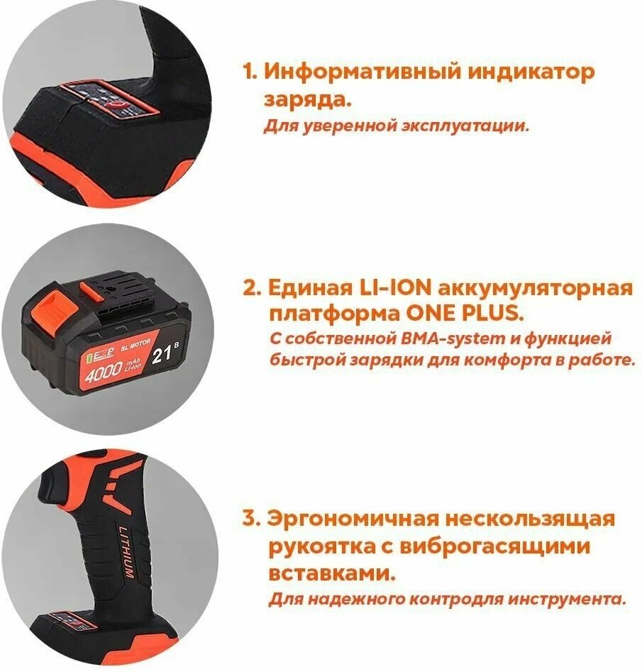 | Комплектация | гайковерт в сборе, два аккумулятора 4000 mAh серии ONE PLUS, импульсное зарядное устройство, ударная головка 1/2", полимерный кейс. |