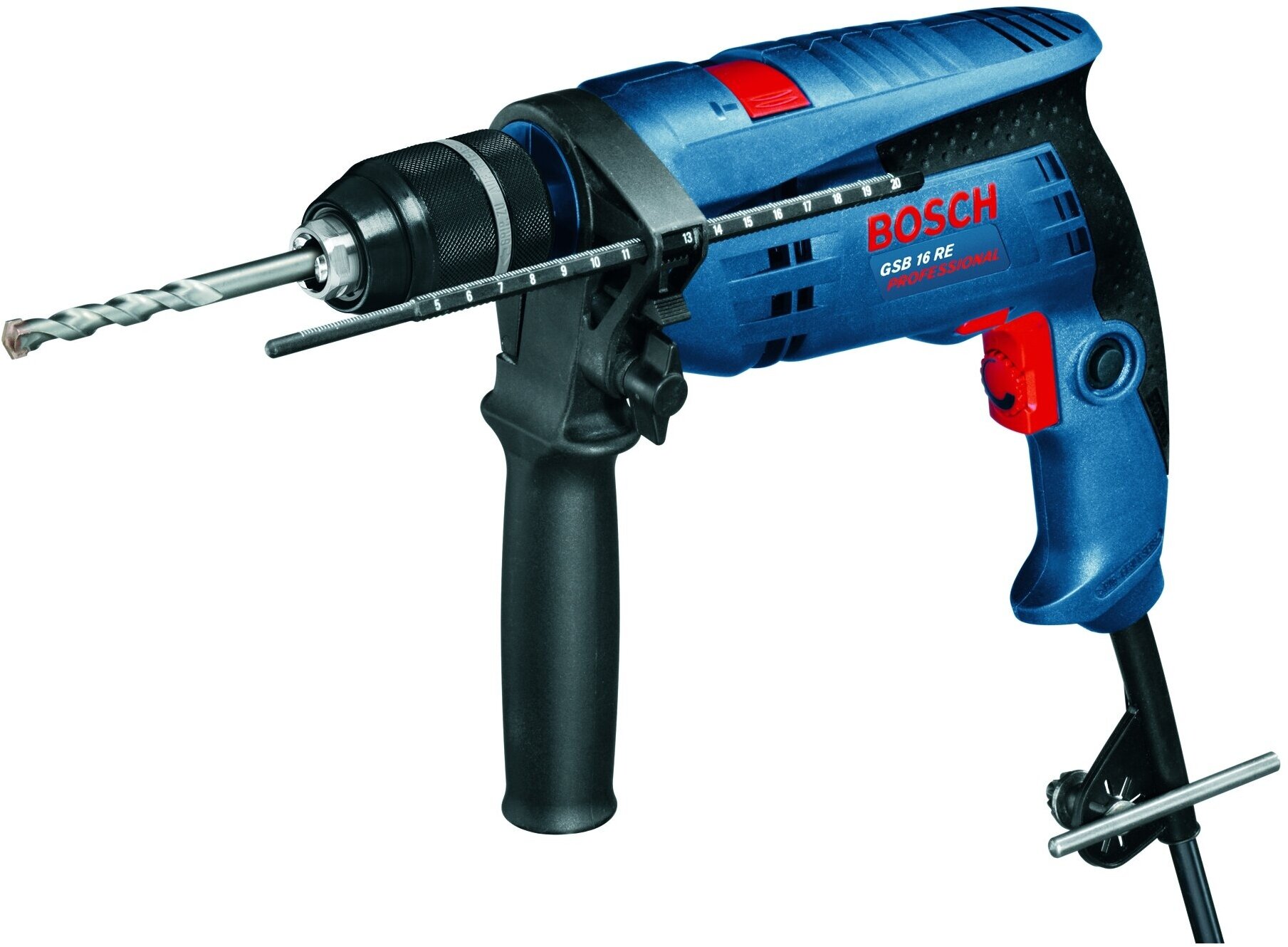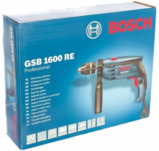 Ударная дрель BOSCH GSB 1600 RE (БЗП) коробка, 701 Вт синий