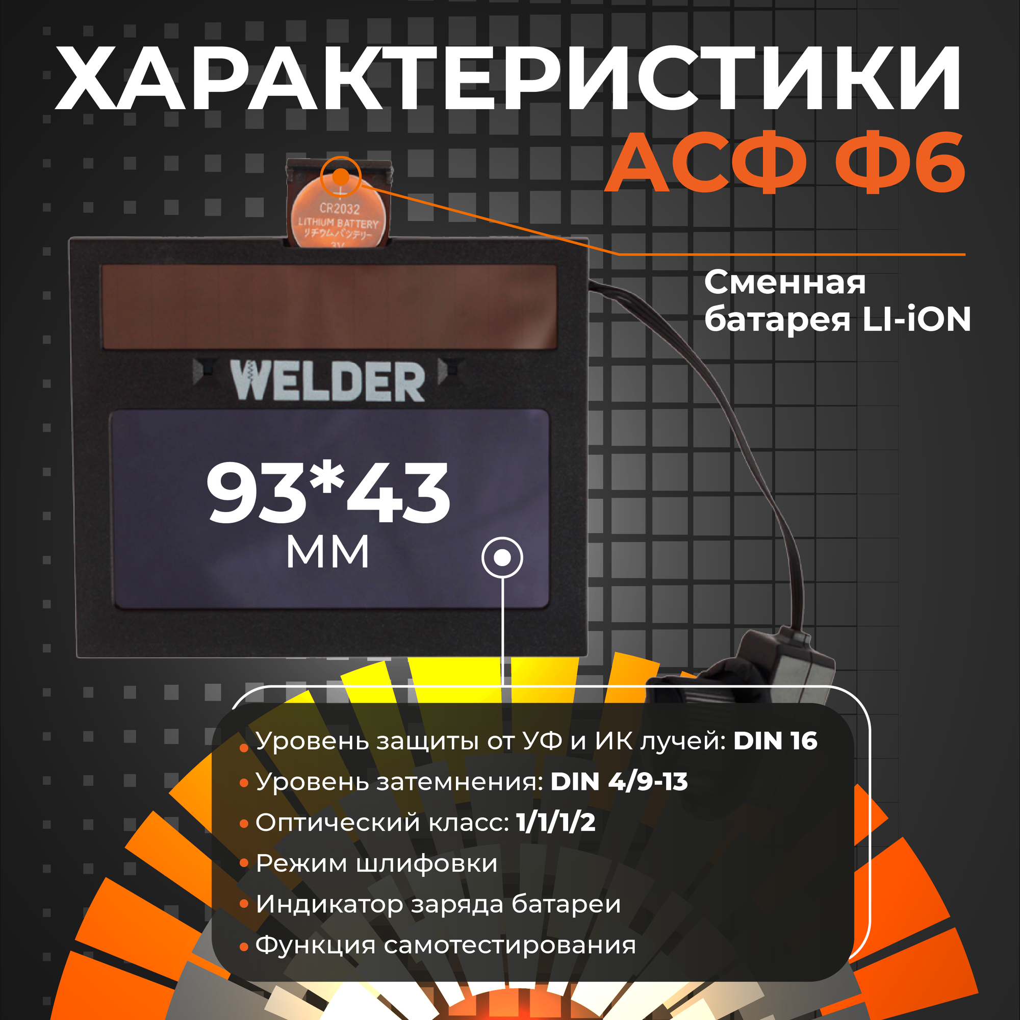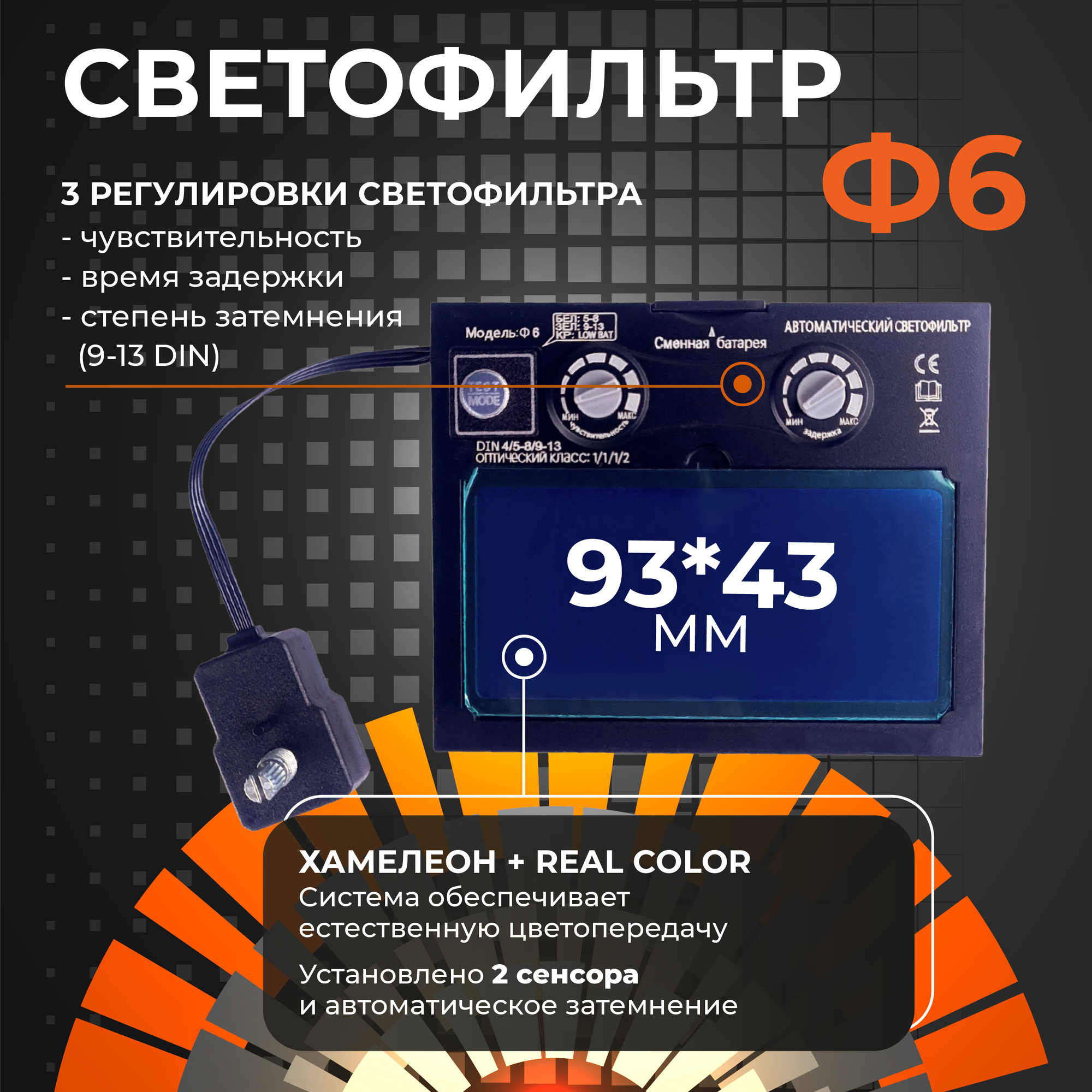 Маска сварочная WELDER PRO Ф6 REAL COLOR Хамелеон 93x43 мм, DIN 4/9-13 (Внешняя регулировка), в коробке интересное:
