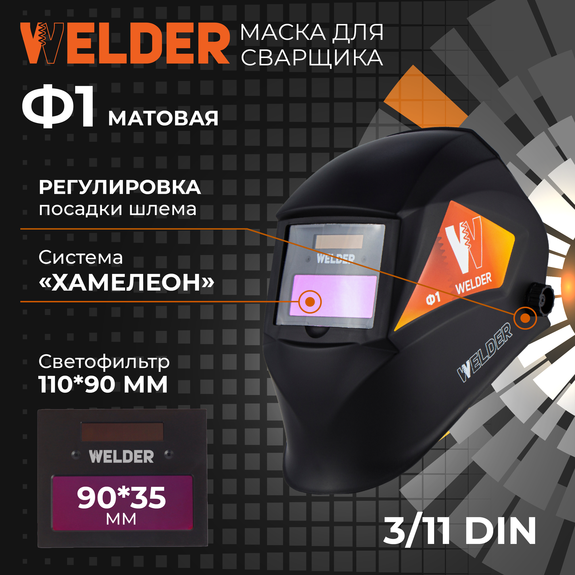 Маска сварочная WELDER PRO Ф1 Хамелеон 90x35 мм, DIN 3/11, матовая, в коробке интересное:
