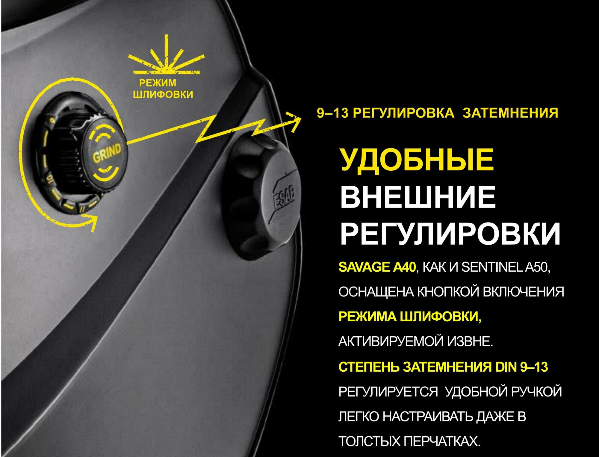 Маска сварочная ESAB Savage A40 9-13 Желтая (Сменная батарея)
