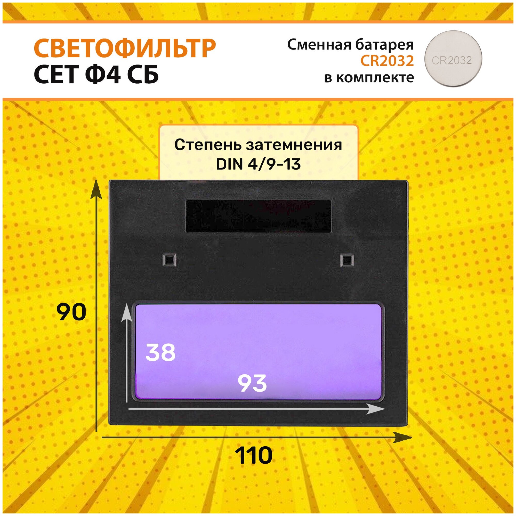 | Минимальная степень затемнения | 4 DIN |