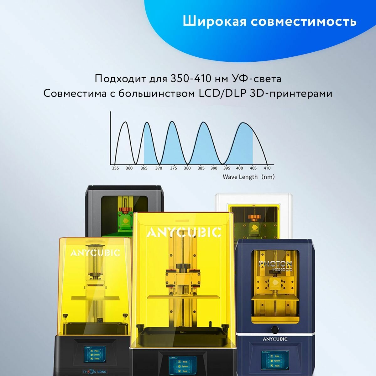 Фотополимерная смола Вода смываемая Anycubic Water-Wash Resin UV для 3Д принтеров LCD DLP 405нм , Голубая (Blue) , 1 литр