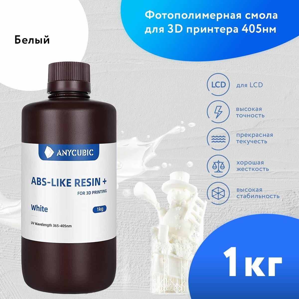 Купить Фотополимерная смола Anycubic ABS+ LIKE Resin + UV Resin для 3D принтера 405нм Белый (White) 1 литр