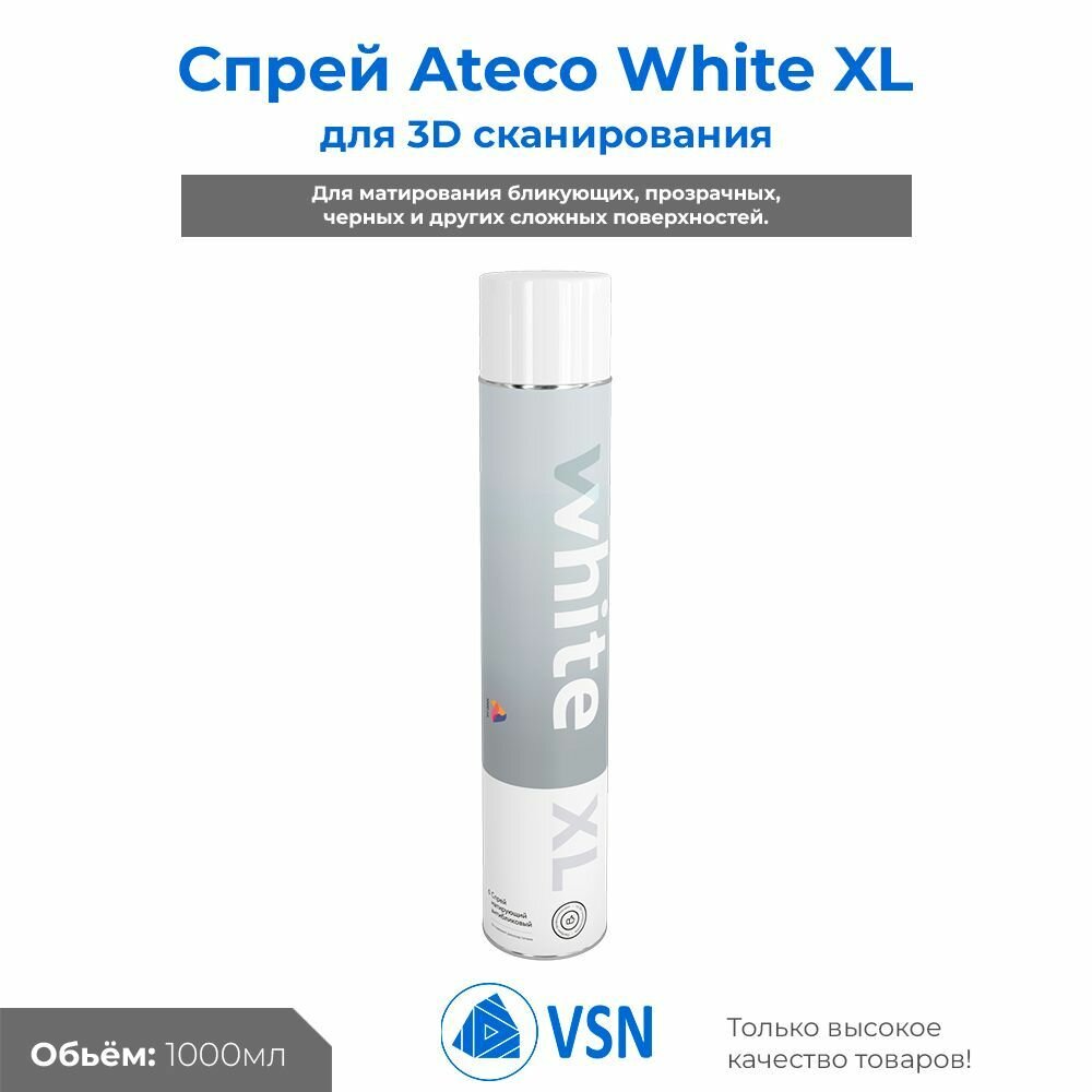 Спрей для 3D сканирования White XL/3Д принтер/антибликовый/матирующий 1000 мл. ATECO