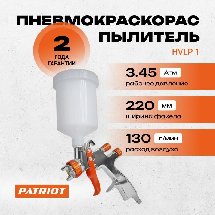 Краскопульт Patriot HVLP 1_4А 130л/мин 1_4мм 3_5бар верхний бак