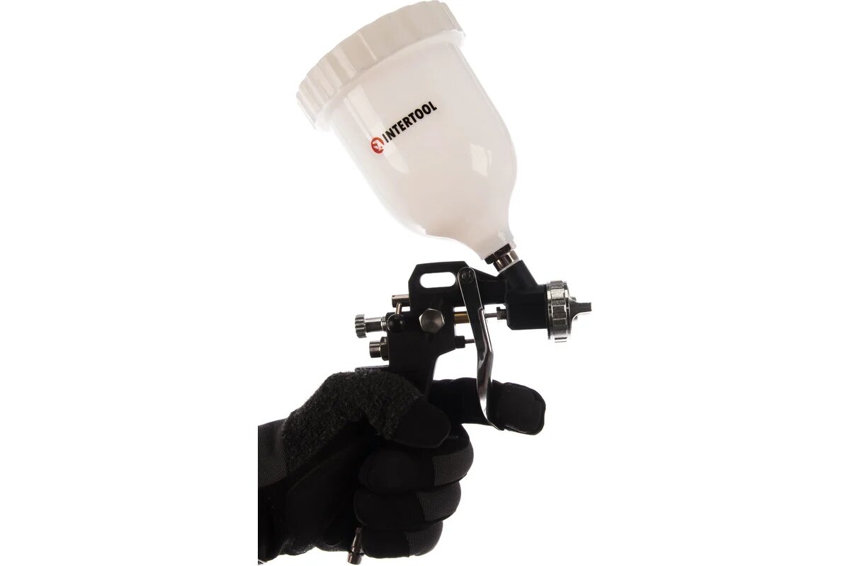 INTERTOOL Краскопульт пневматический HP, форсунка 1.5мм, бачок 600мл, 3 регулировки, 5bar PT-0210 интересное: