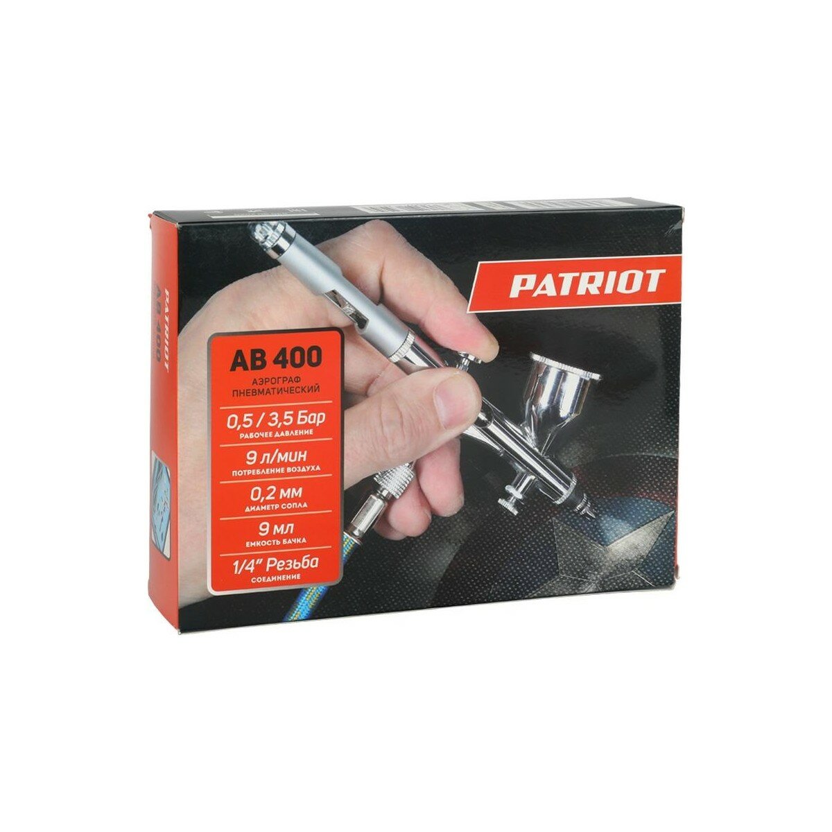 PATRIOT Аэрограф пневматический PATRIOT AB 400, сопло 0.2 мм, 9 л/мин, бачок 9 мл