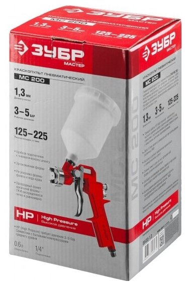 Купить Краскораспылитель Зубр Мастер МС 200, HP, c верхним бачком, 1.3мм