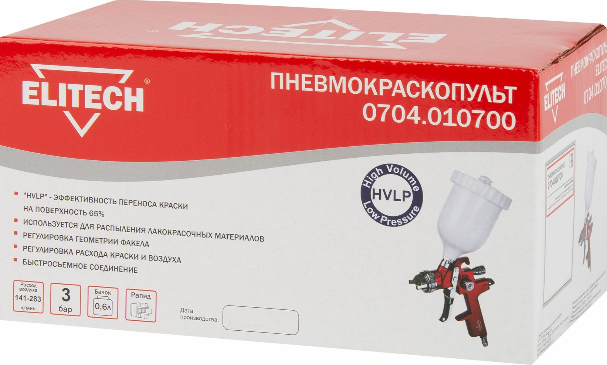 Краскораспылитель пневматический Elitech HVLP верхний пластиковый бак 283 л/мин 0.6 л интересное: