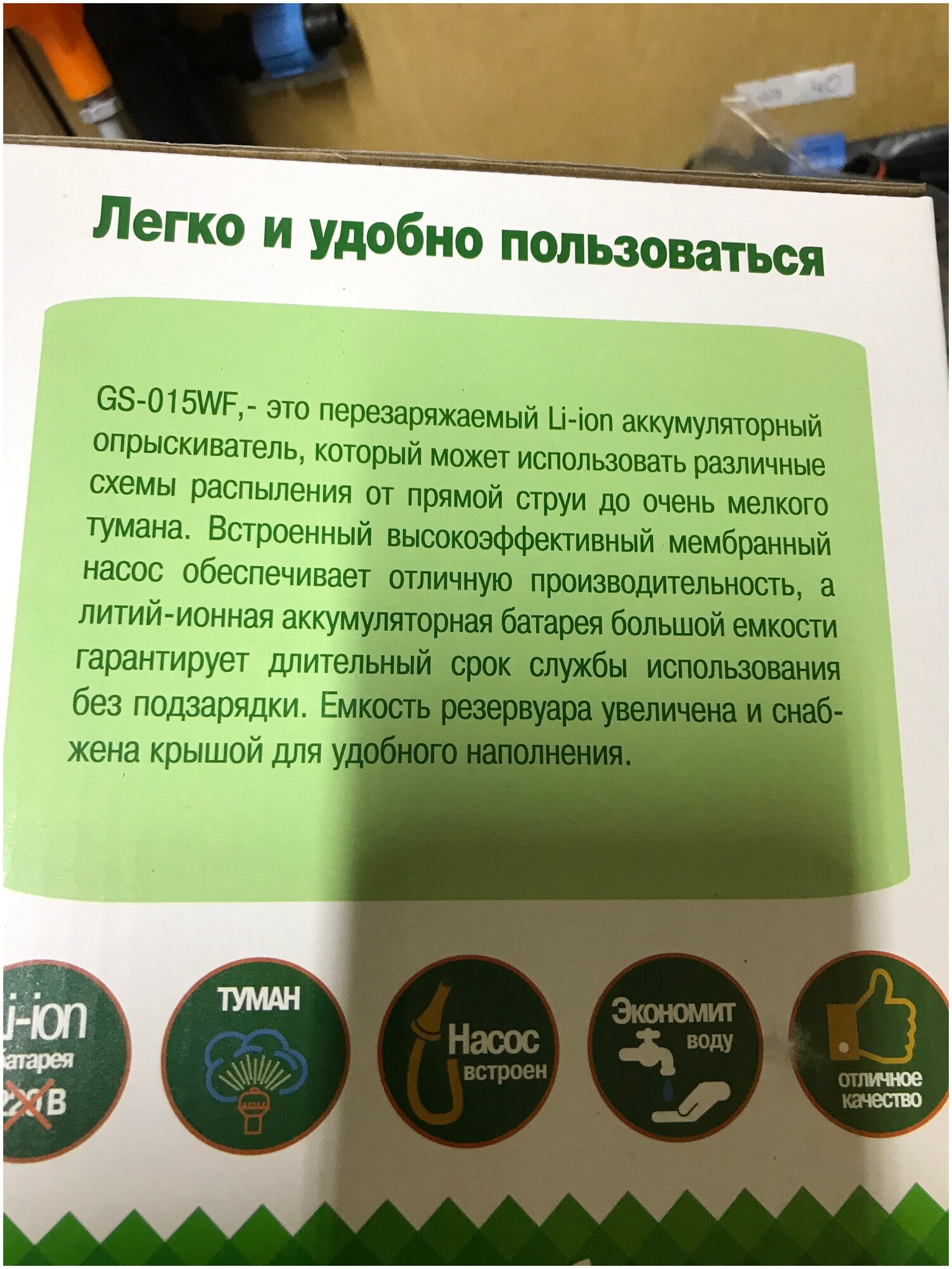 Ниже Вы можете прочитать отзывы на Опрыскиватель электрический, (GS-015WF), ознакомится с подробными характеристиками, посмотреть интересные обзоры и фотографии на Опрыскиватель электрический, (GS-015WF).