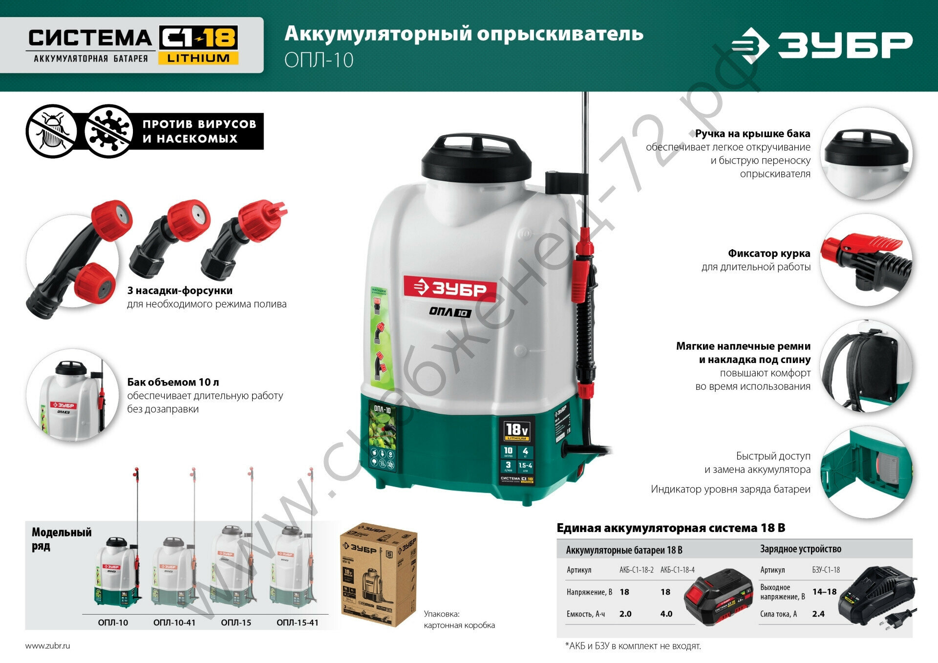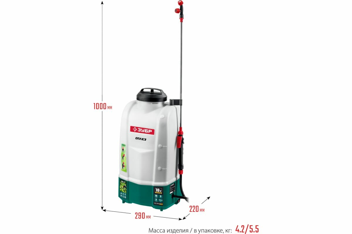 ЗУБР 18 В, Li-Ion, 15 л бак, 1 АКБ (4А/ч), опрыскиватель аккумуляторный ОПЛ-15-41 Мастер интересное: