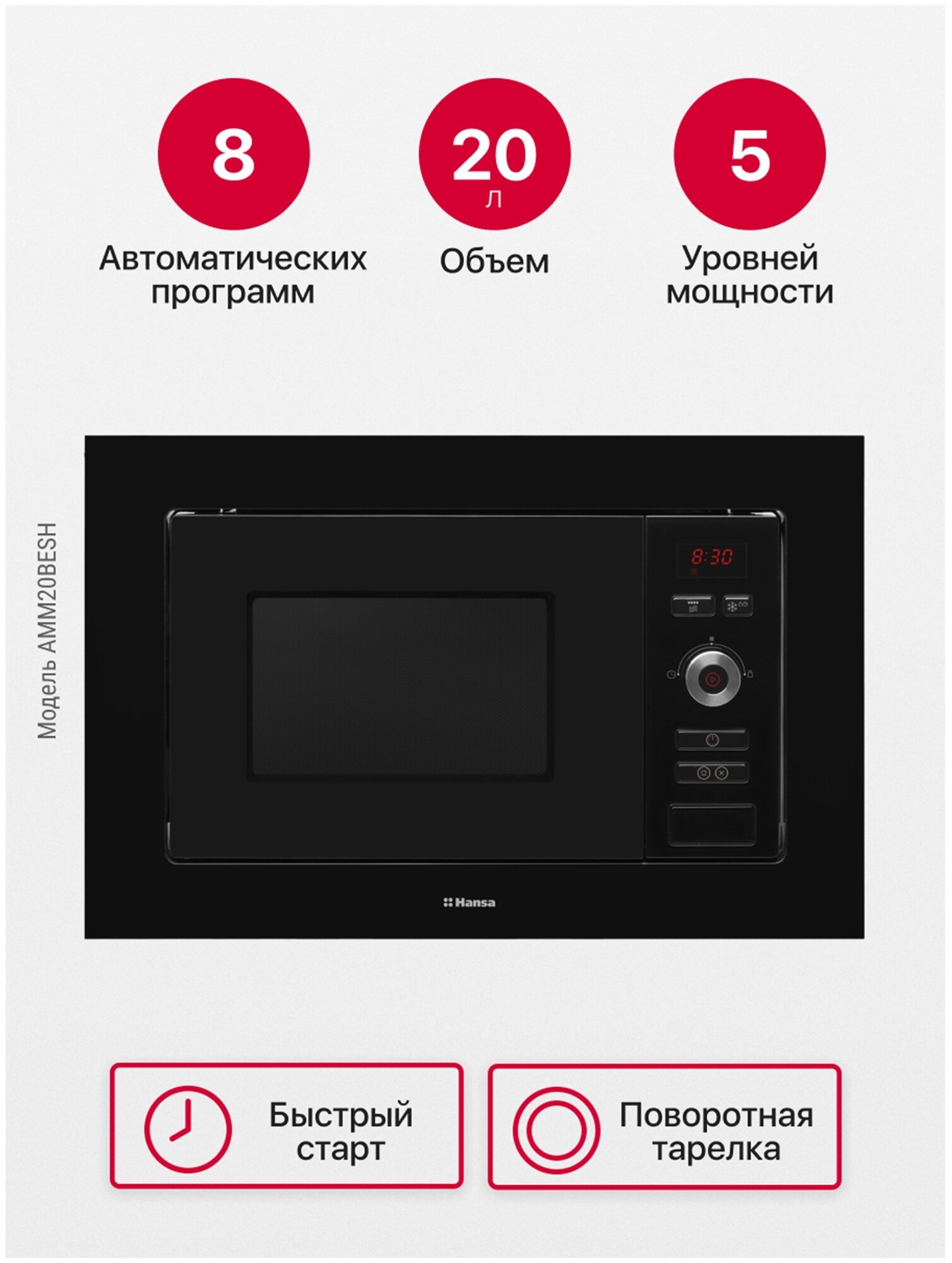 Встраиваемая СВЧ Hansa AMM20BESH . интересное: