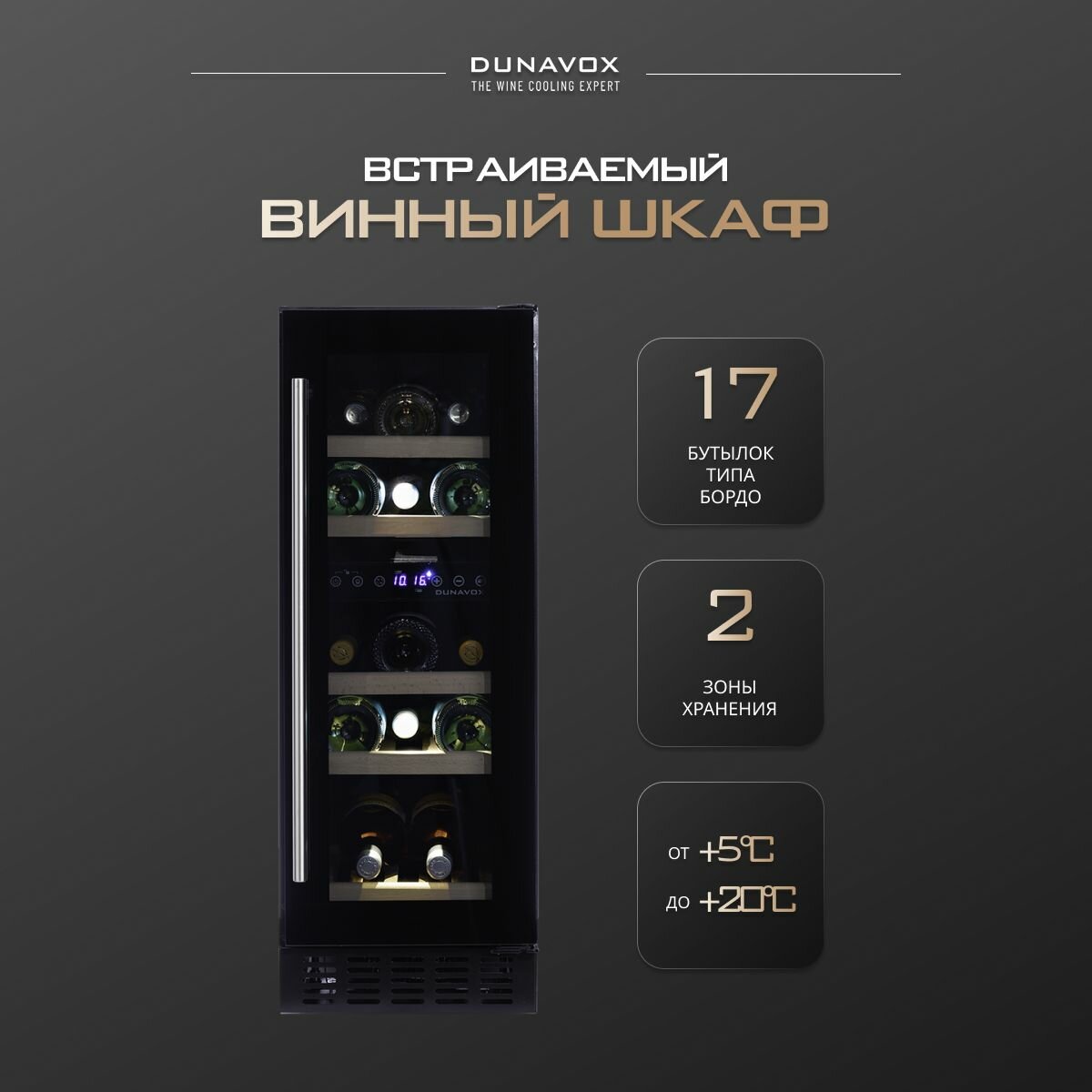 Встраиваемый винный шкаф DUNAVOX DAUF-17.58DB интересное: