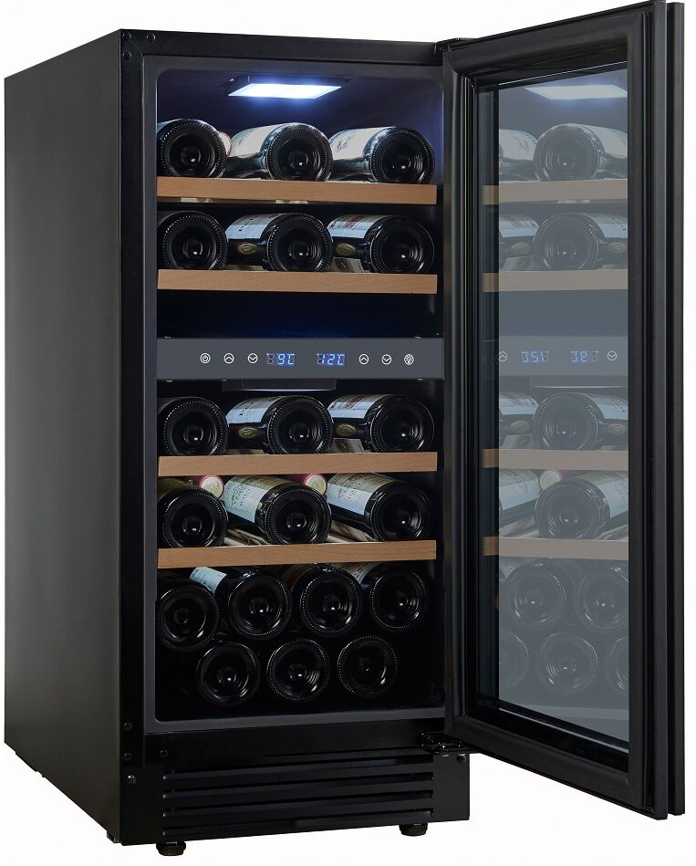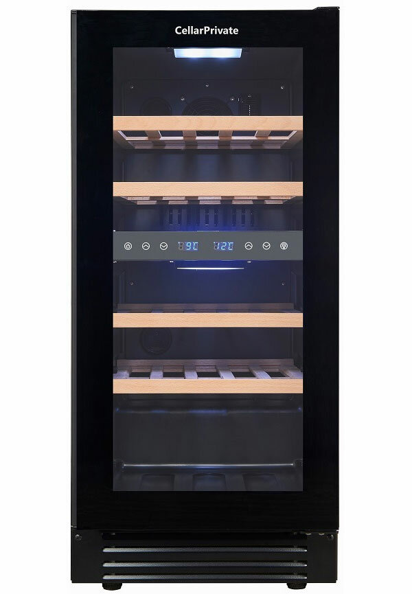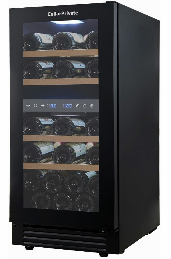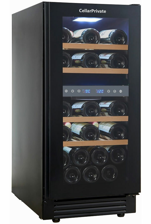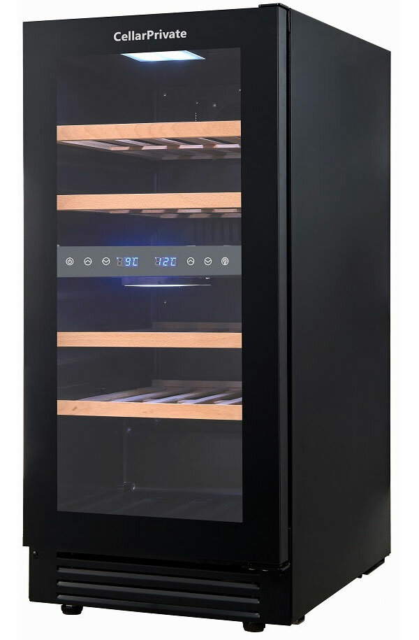 Винный шкаф Cellar Private CP027-2TBH, встраиваемый, двухтемпературный, 27бут, черный.