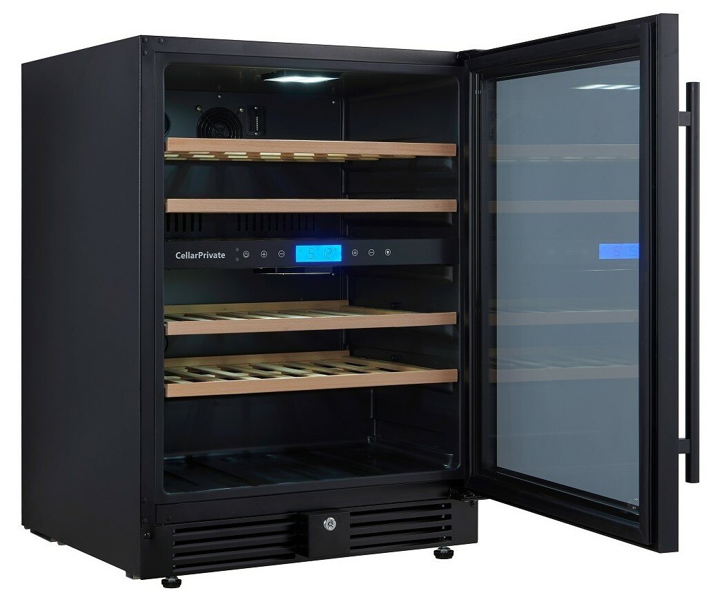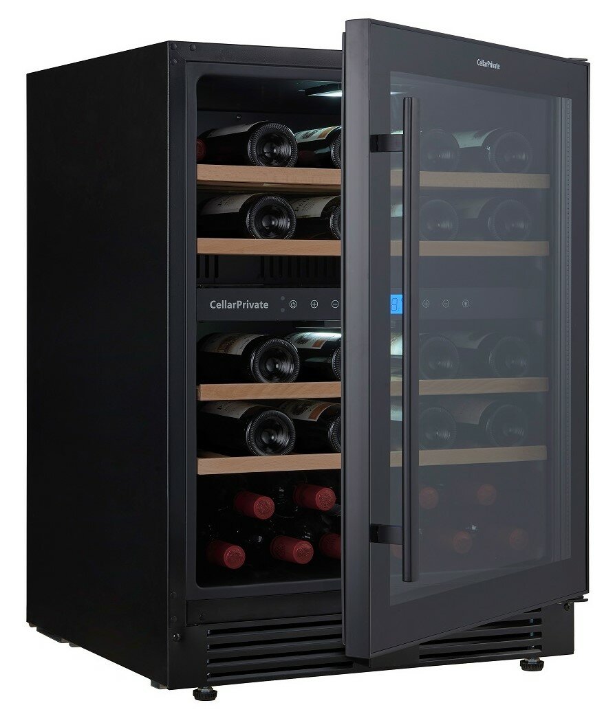 Винный шкаф Cellar Private CP043-2TB, встраиваемый, двухтемпературный, 44бут, черный. интересное: