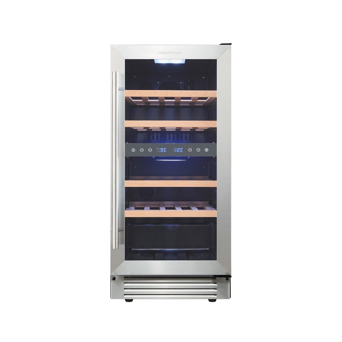 Купить Винный шкаф Cellar Private CP027-2T, встраиваемый, двухтемпературный 27бут, серебристый.
