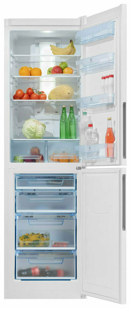 в холодильной камере полки можно варьировать по высоте. в морозильной камере четыре контейнера. хорошее решение - продукты в заморозку можно разделить на большее количество групп. взяли версию с дверями из серого металлопласта - смотрится отлично. следы от касаний незаметны. упакован надежно. все полки внутри зафиксированы от перемещений. |