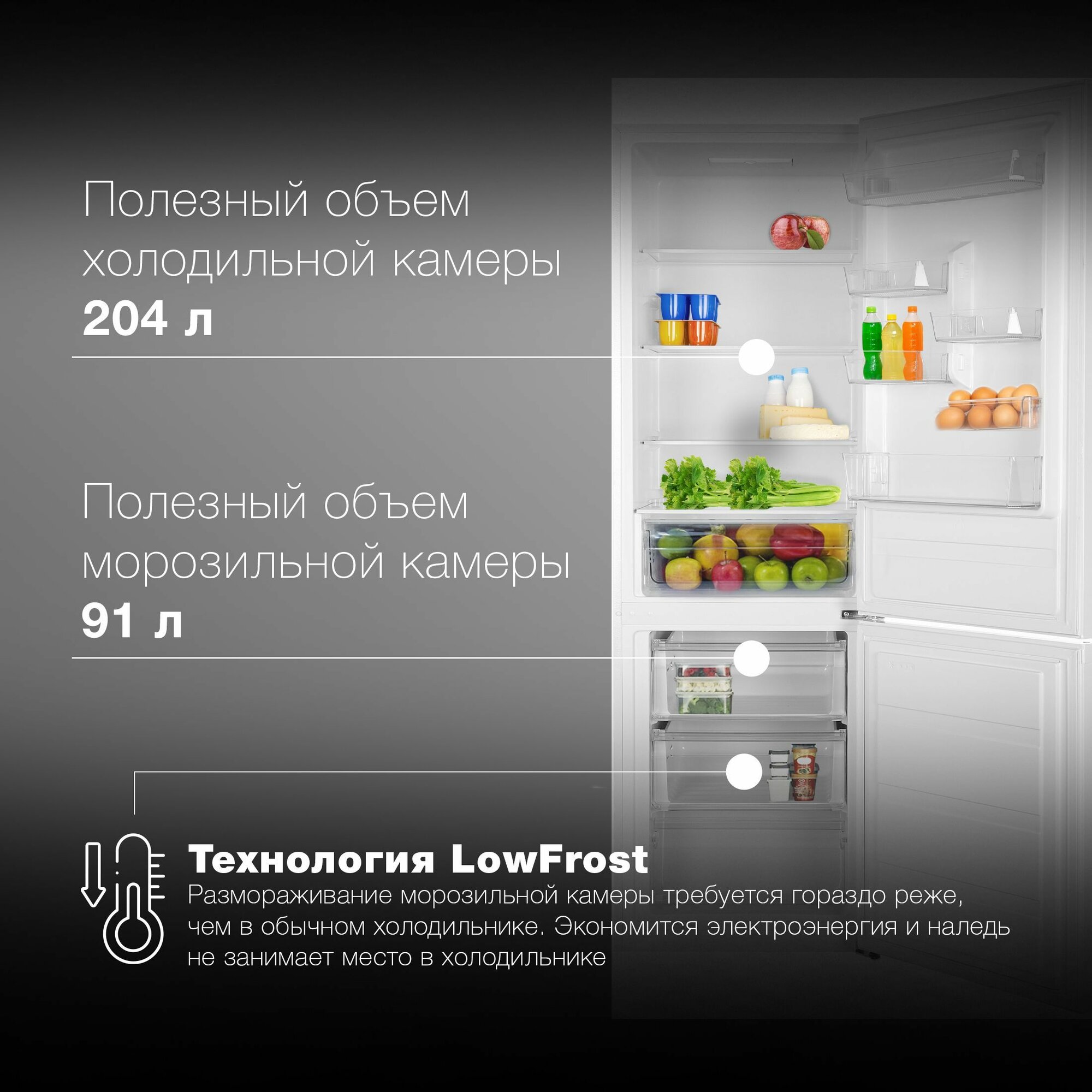 | Объем холодильной камеры | 204 л |