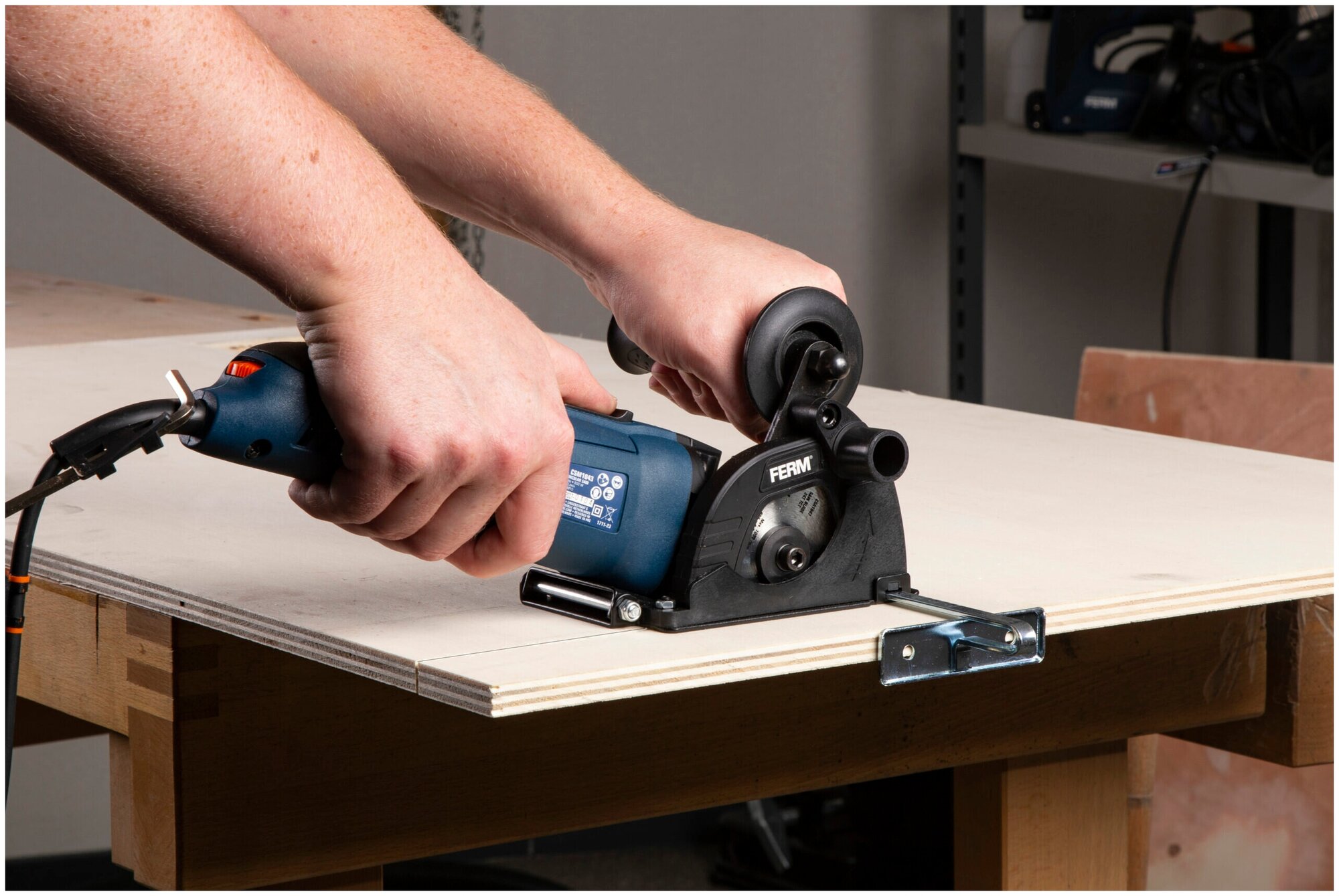 Пила циркулярная FERM CSM1043, диск 85мм, 500 Вт., 6500 об.мин., глубина пропила 22м, кейс интересное: