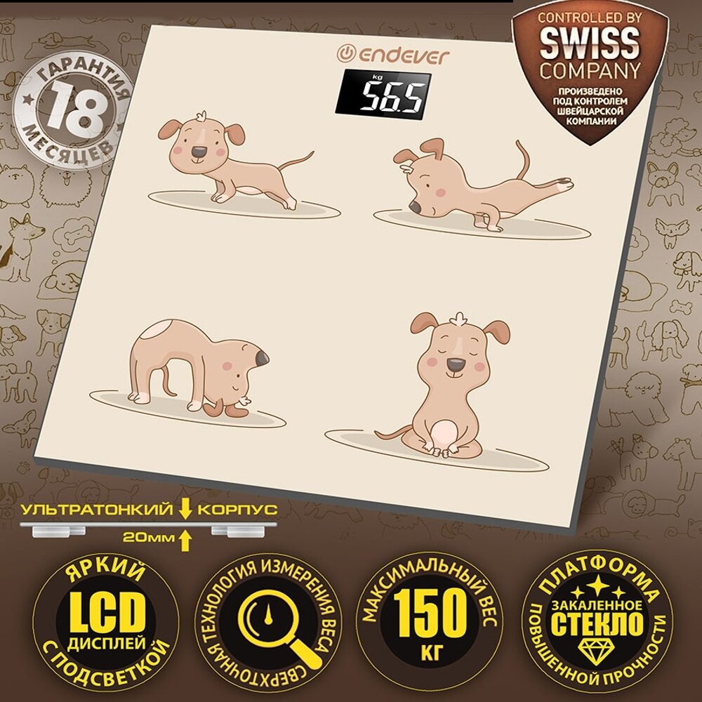 Купить Весы напольные электронные Endever Aurora-564 / рисунок Щенок / закаленное стекло / до 150 кг