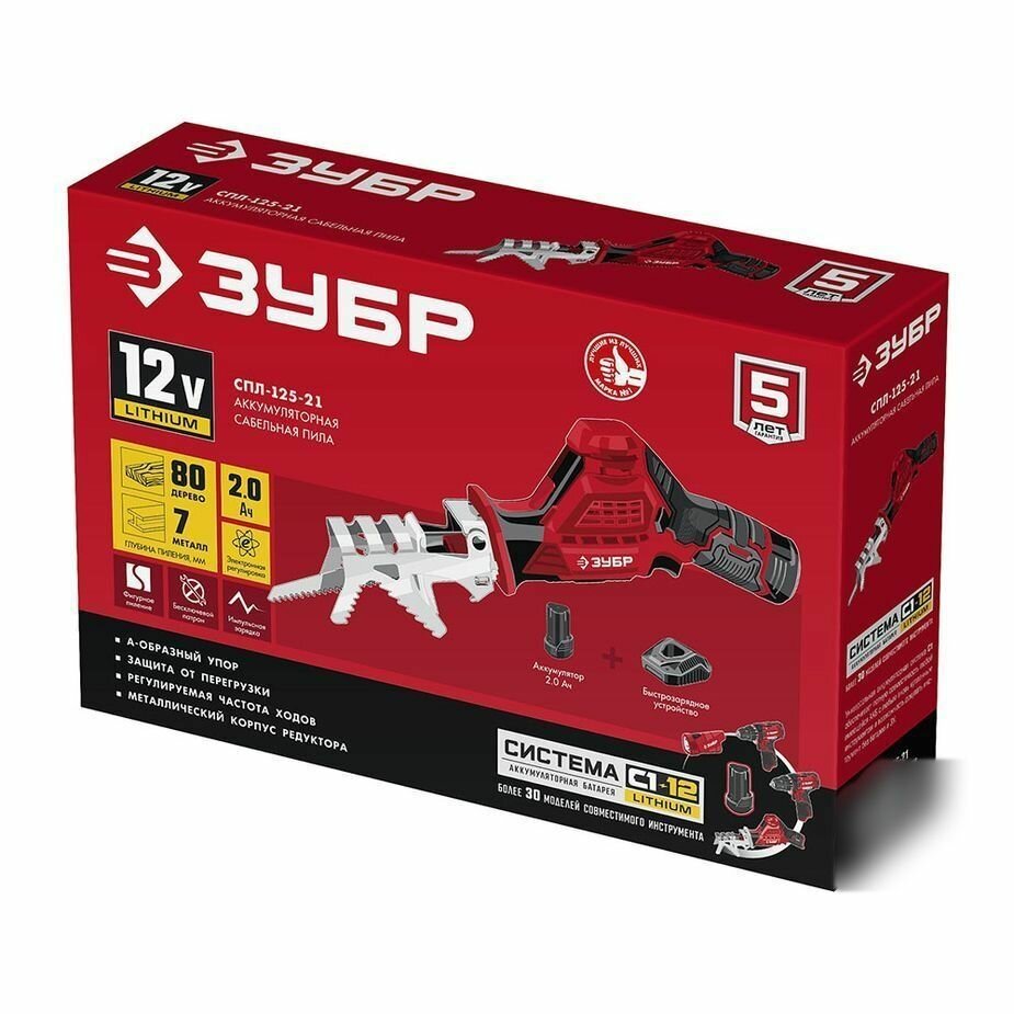 Пила сабельная аккумуляторная Зубр СПЛ-125 (СПЛ-125-21) 12В Li-Ion с АКБ и ЗУ