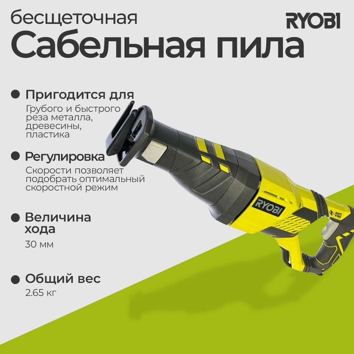 Пила сабельная аккумуляторная бесщеточная Ryobi R18RS7-0 ONE+ интересное: