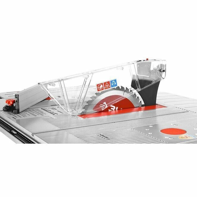 | Комплект поставки | диск пильный, кожух защитный, расклиниватель, продольная направляющая, упор угловой, 2 ключа гаечных, ключ шестигранный, 2 рукоятки, 3 удлинителя стола с направляющими, станина |