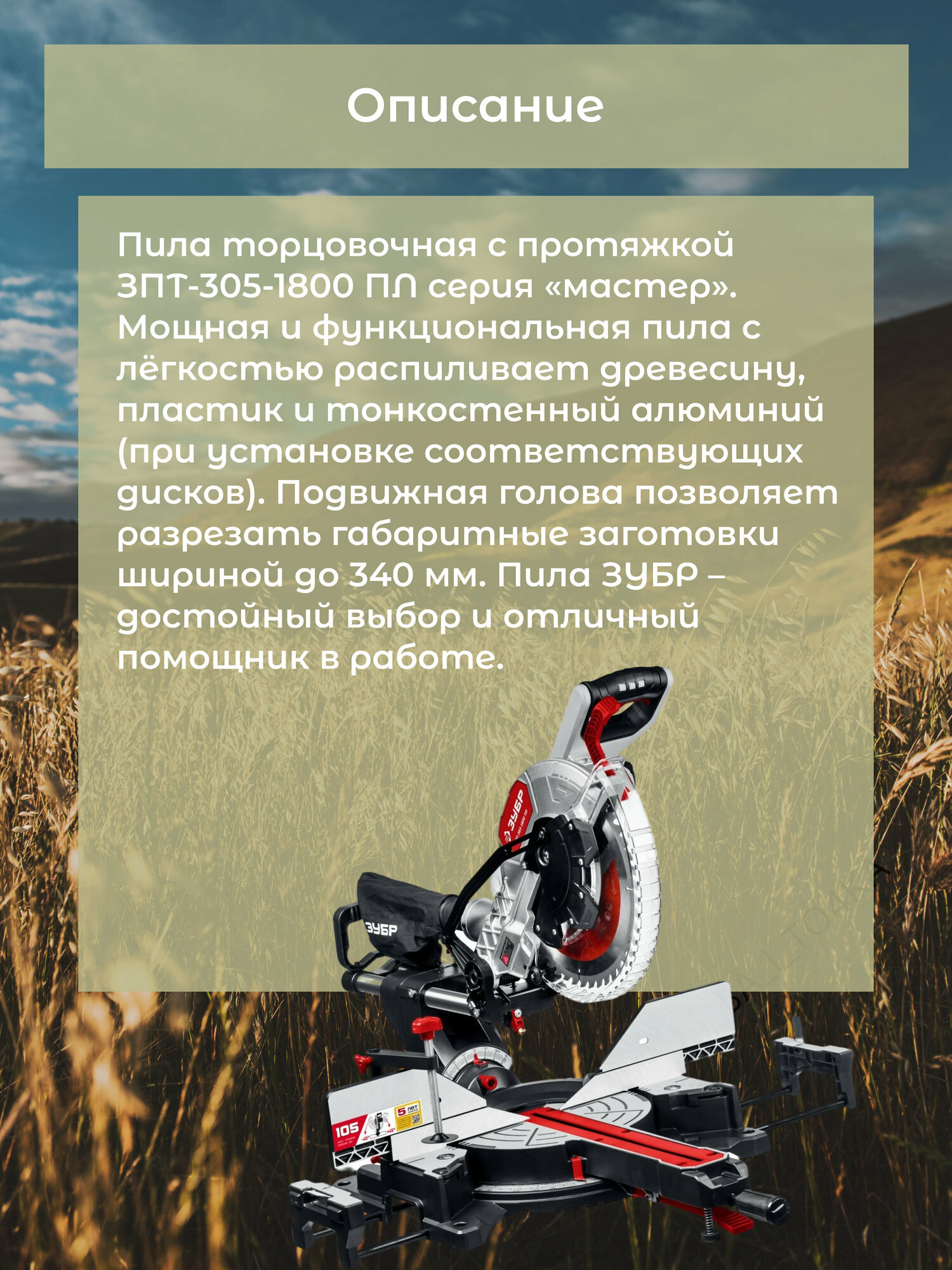 Пила торцовочная ЗУБР ЗПТ-305-1800 ПЛ, серия «мастер»