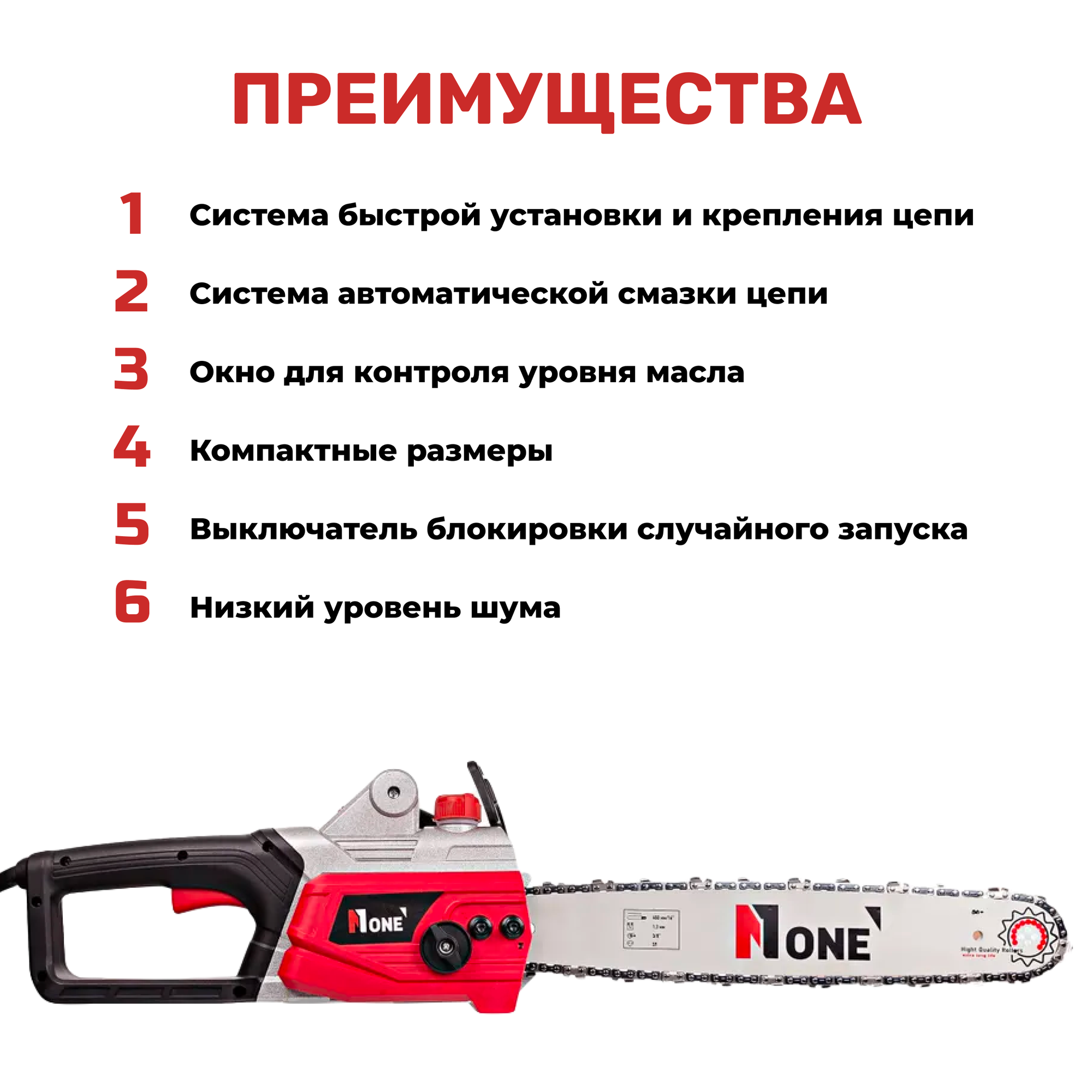 Пила цепная электрическая NUMBER ONE ECS2400-PRO 2400Вт, 4800Об/мин, 16". интересное: