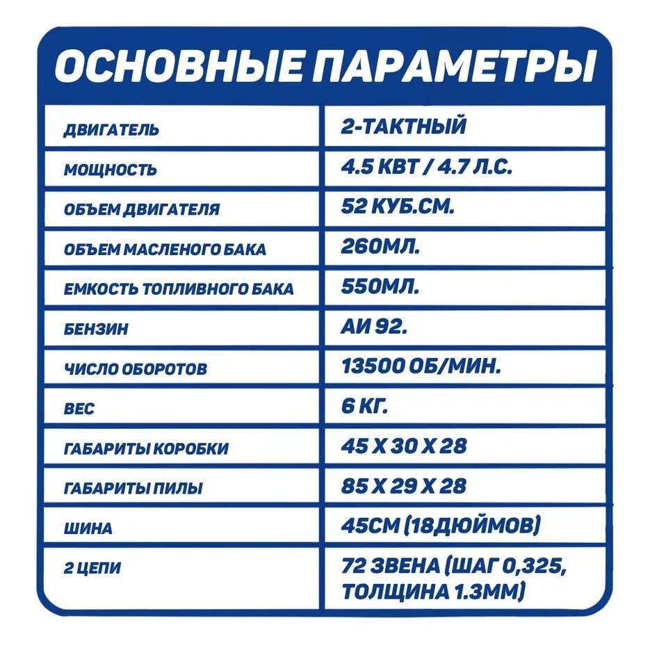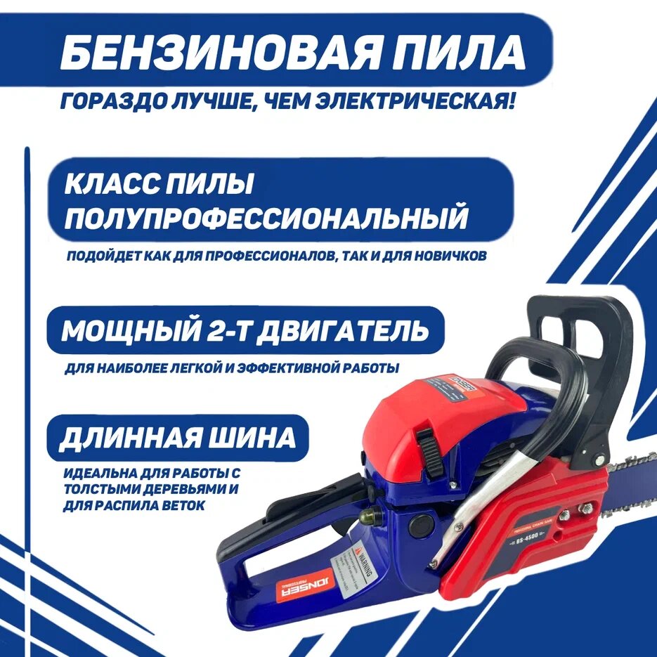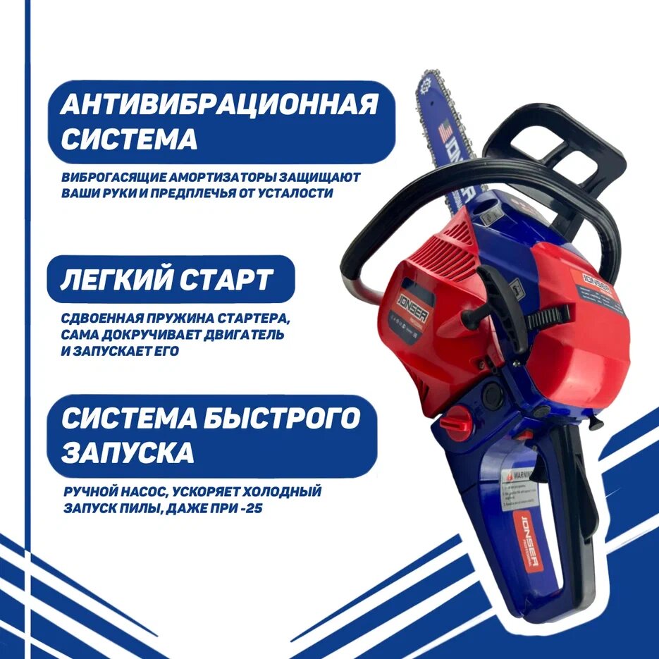 Цепная бензопила/ Пила цепная бензиновая/ Бензиновая цепная пила Jonser BS-4500 интересное: